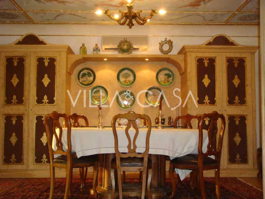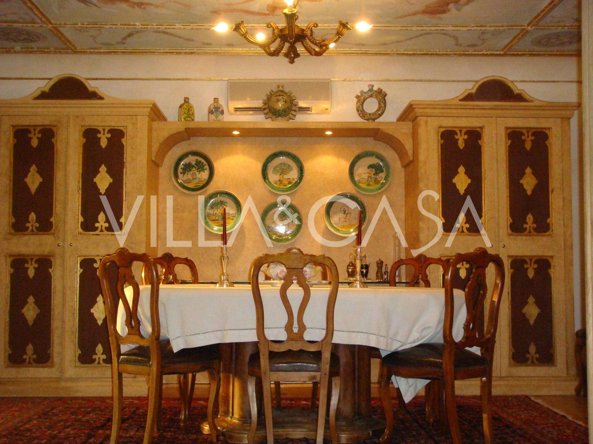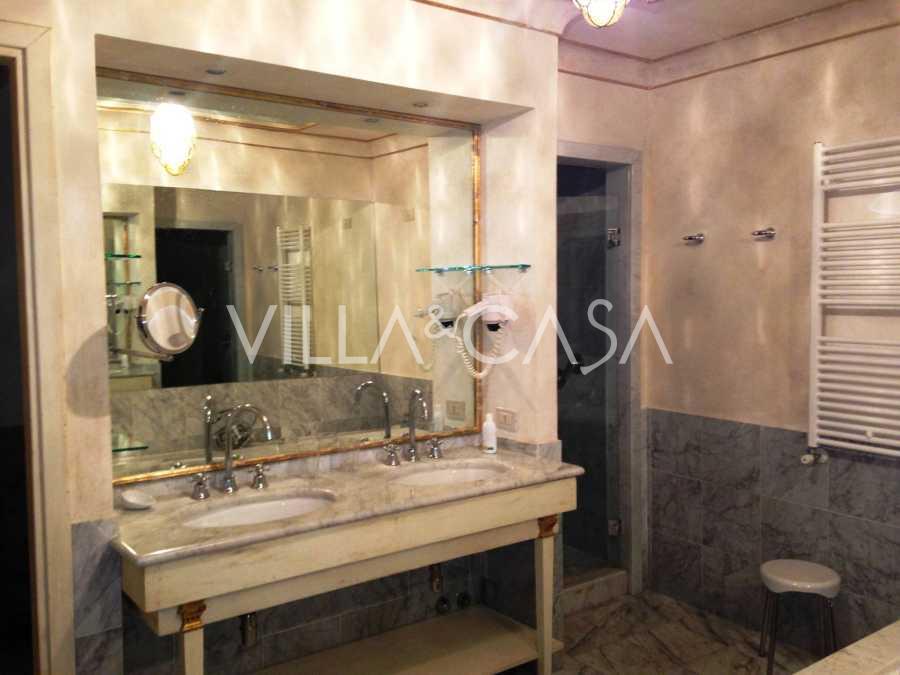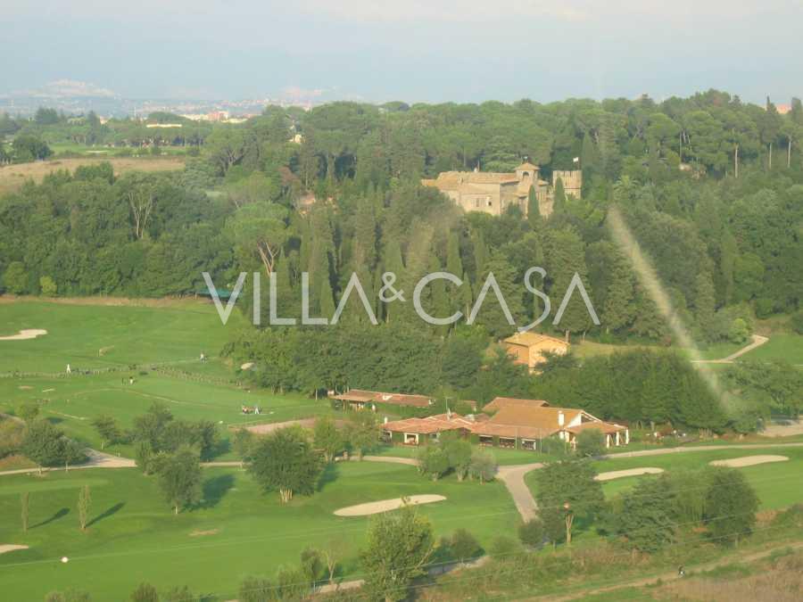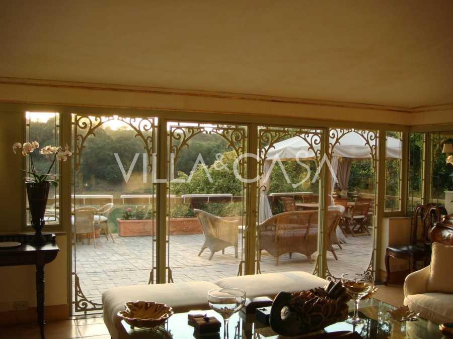 I en af de mest prestigefyldte og sikrede boligkomplekser i det nordlige Rom, i området Due Ponti / Corso Francia, nær 18-hullers golfklubben Parco di Roma, udlejes en enestående historisk villa på omkring 700 m², beliggende på fem niveauer med terrasser og private udendørs områder.