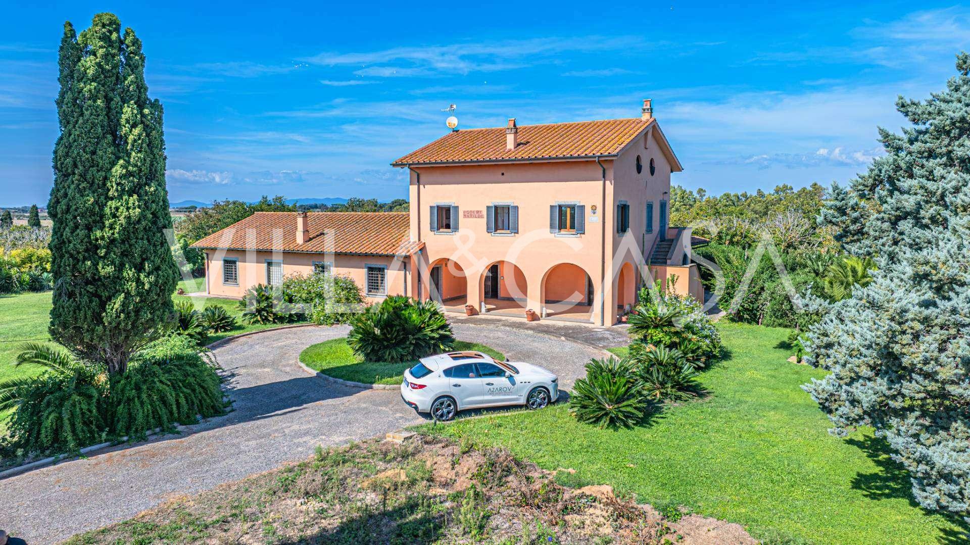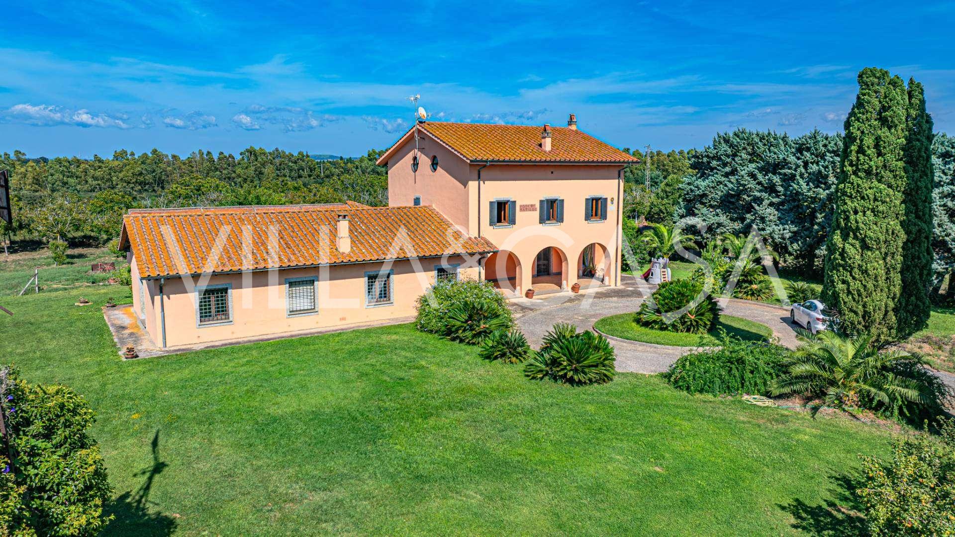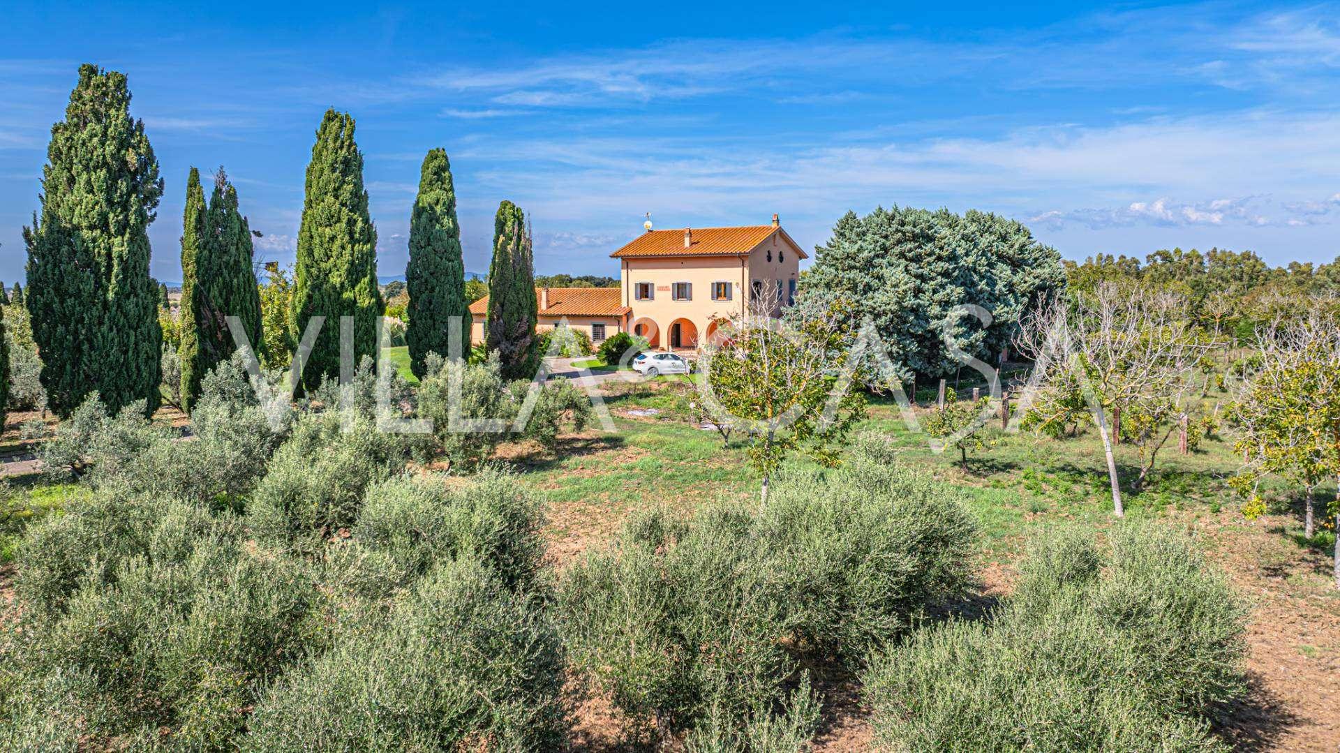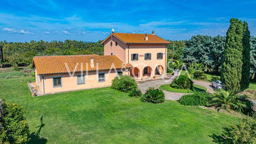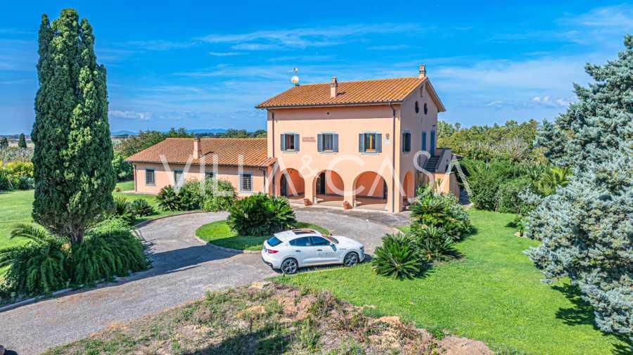Der tilbydes et bondehus til salg, beliggende i et roligt område af Tarquinias landlige omgivelser, kun få hundrede meter fra havet, som kan ses smukt fra de øverste etager. Huset har nem adgang til bymiljøet og kystområdet. Bygget i 1942, blev det fuldstændig renoveret i 1990'erne med brug af traditionelle materialer af højeste kvalitet og møbleret med håndlavede designermøbler. Huset ligger på en grund på over to hektar, omgivet af en pragtfuld have med forskellige planter: frugttræer, palmer, oliventræer, nødder, en vingård, tropisk flora, buske, rosenhaver og frodige blomster.