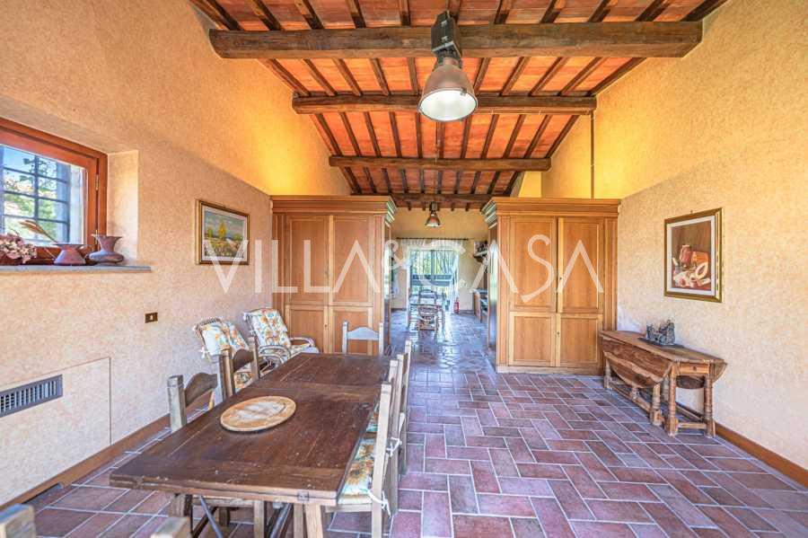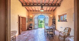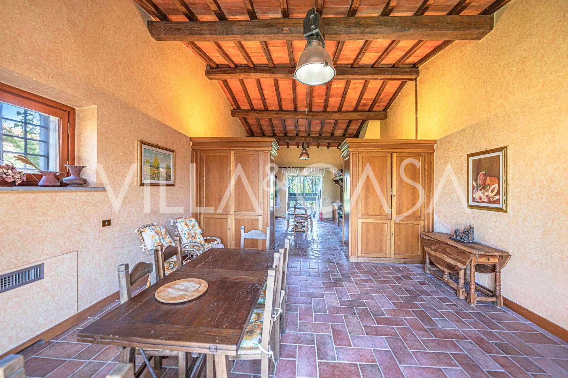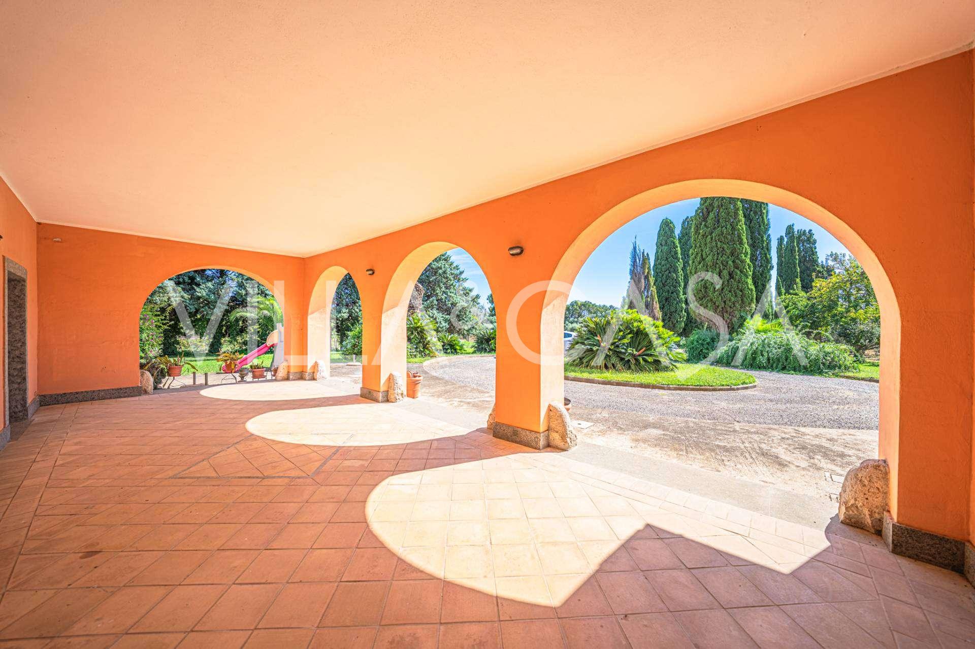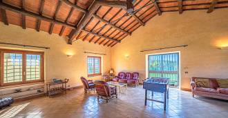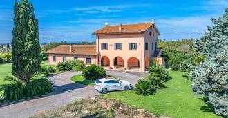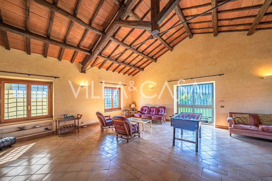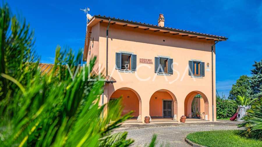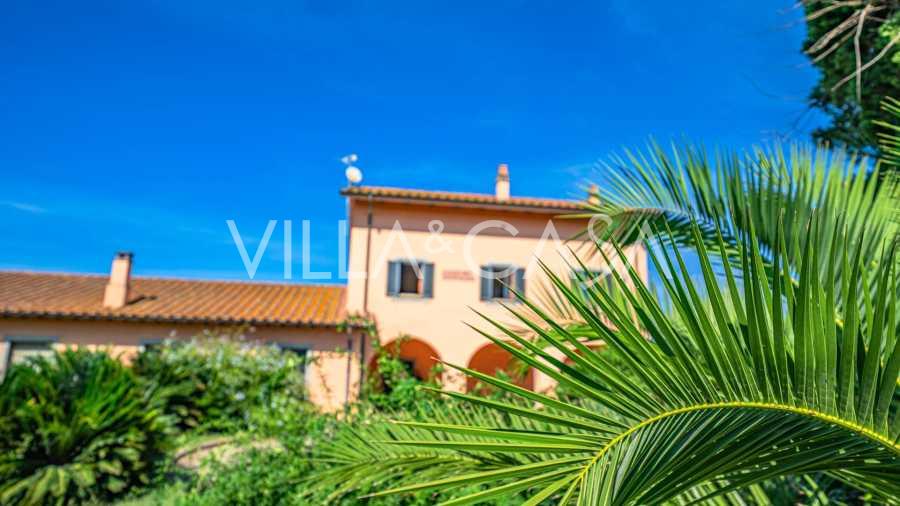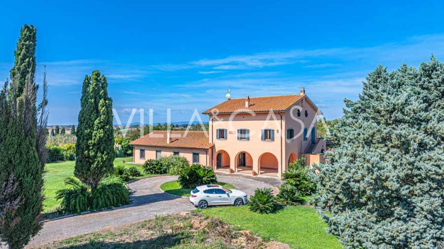 Der tilbydes et bondehus til salg, beliggende i et roligt område af Tarquinias landlige omgivelser, kun få hundrede meter fra havet, som kan ses smukt fra de øverste etager. Huset har nem adgang til bymiljøet og kystområdet. Bygget i 1942, blev det fuldstændig renoveret i 1990'erne med brug af traditionelle materialer af højeste kvalitet og møbleret med håndlavede designermøbler. Huset ligger på en grund på over to hektar, omgivet af en pragtfuld have med forskellige planter: frugttræer, palmer, oliventræer, nødder, en vingård, tropisk flora, buske, rosenhaver og frodige blomster.