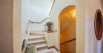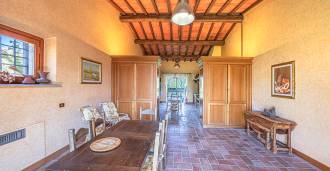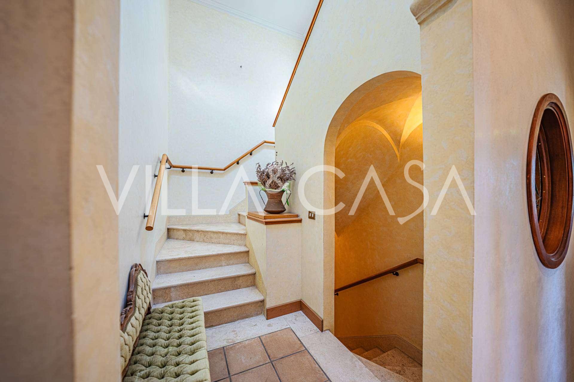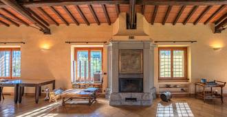 I stueetagen, som dækker omkring 140 m² og engang var en gammel stald, er der nu en rummelig sal med træbjælker i loftet, oplyst af mange vinduer med udsigt over haven. Det centrale sted er optaget af en massiv pejs lavet af sjælden grå peperinmarmor, fremstillet af lokale håndværkere. Her er også et rummeligt køkken med et madlavningsområde, en brændeovn og en pejs samt et separat spiseområde, en rummelig foyer, et soveværelse og to badeværelser.