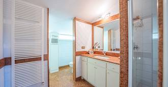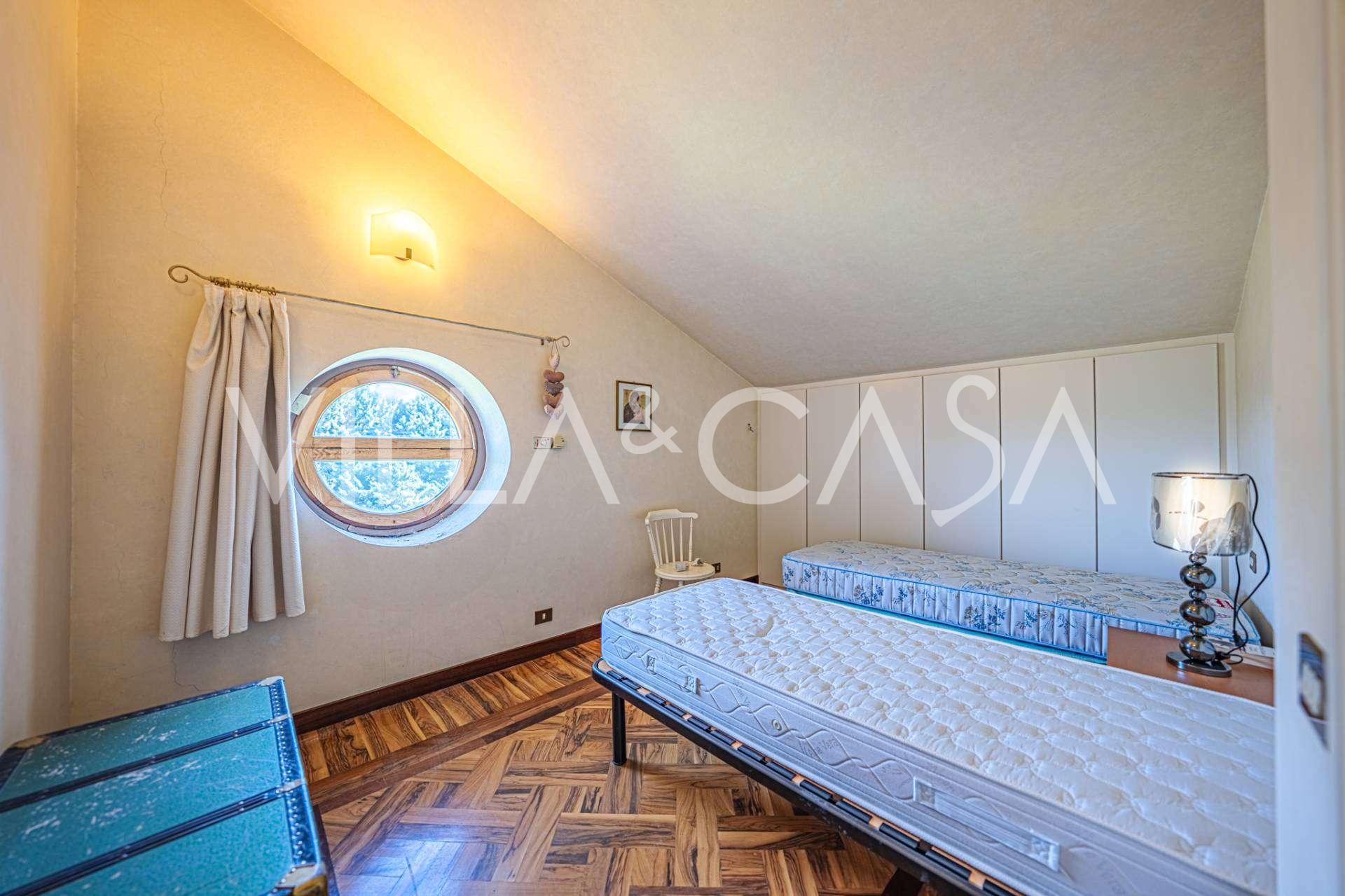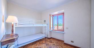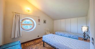 På anden sal, som er tilgængelig via en elegant indvendig marmortrappe og en udvendig trappe, findes tre soveværelser, en stue og to badeværelser.