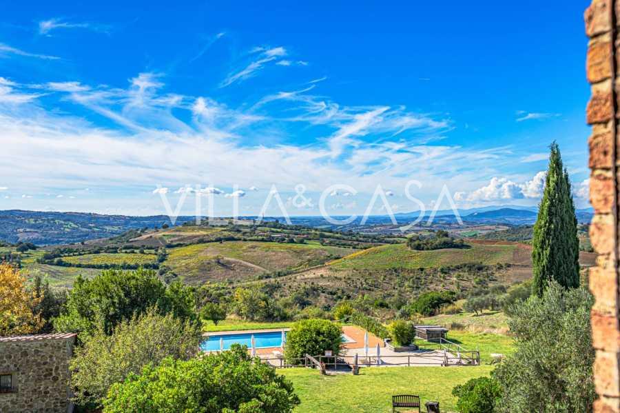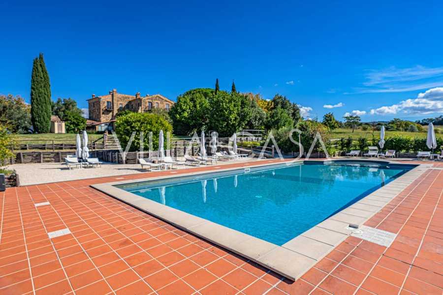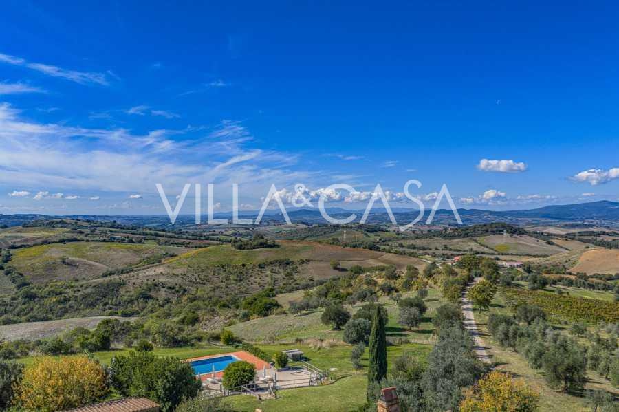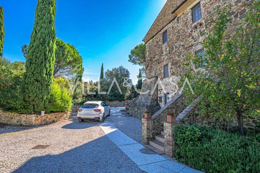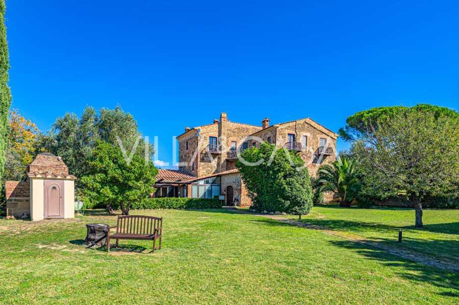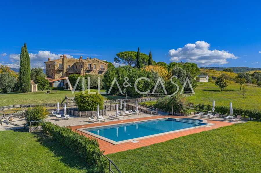 I hjertet af det solrige toscanske Maremma, blandt de bløde bakker mellem Scansano og Roccalbegna, står en smuk historisk villa fra det 17. århundrede, der kombinerer ægte italiensk elegance med moderne komfort. Denne raffinerede landejendom, omhyggeligt restaureret med respekt for den historiske ånd, er nu en elegant bolig, ideel både til privat beboelse og til drift af et boutique-hotel.