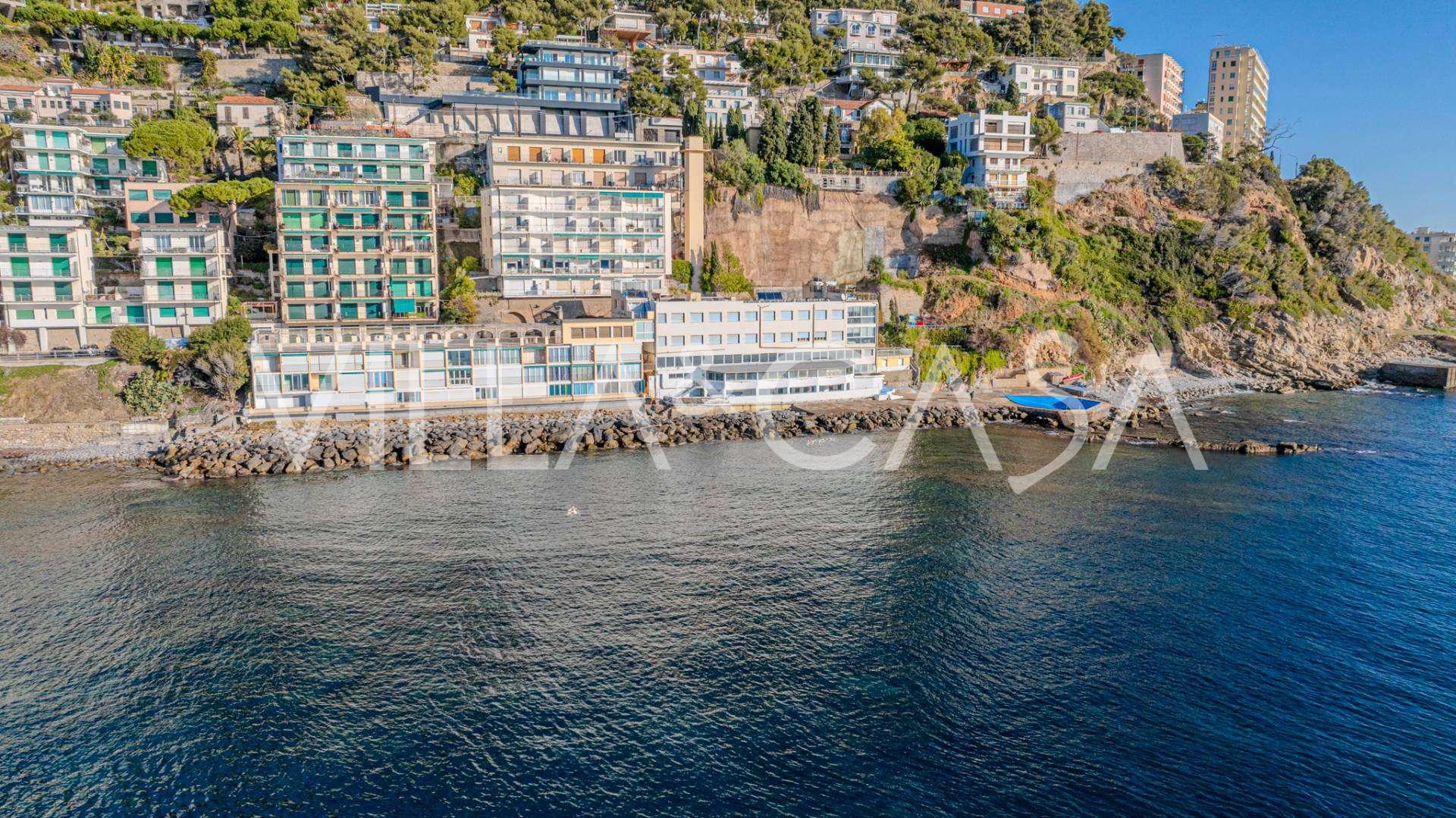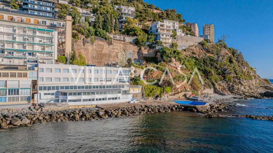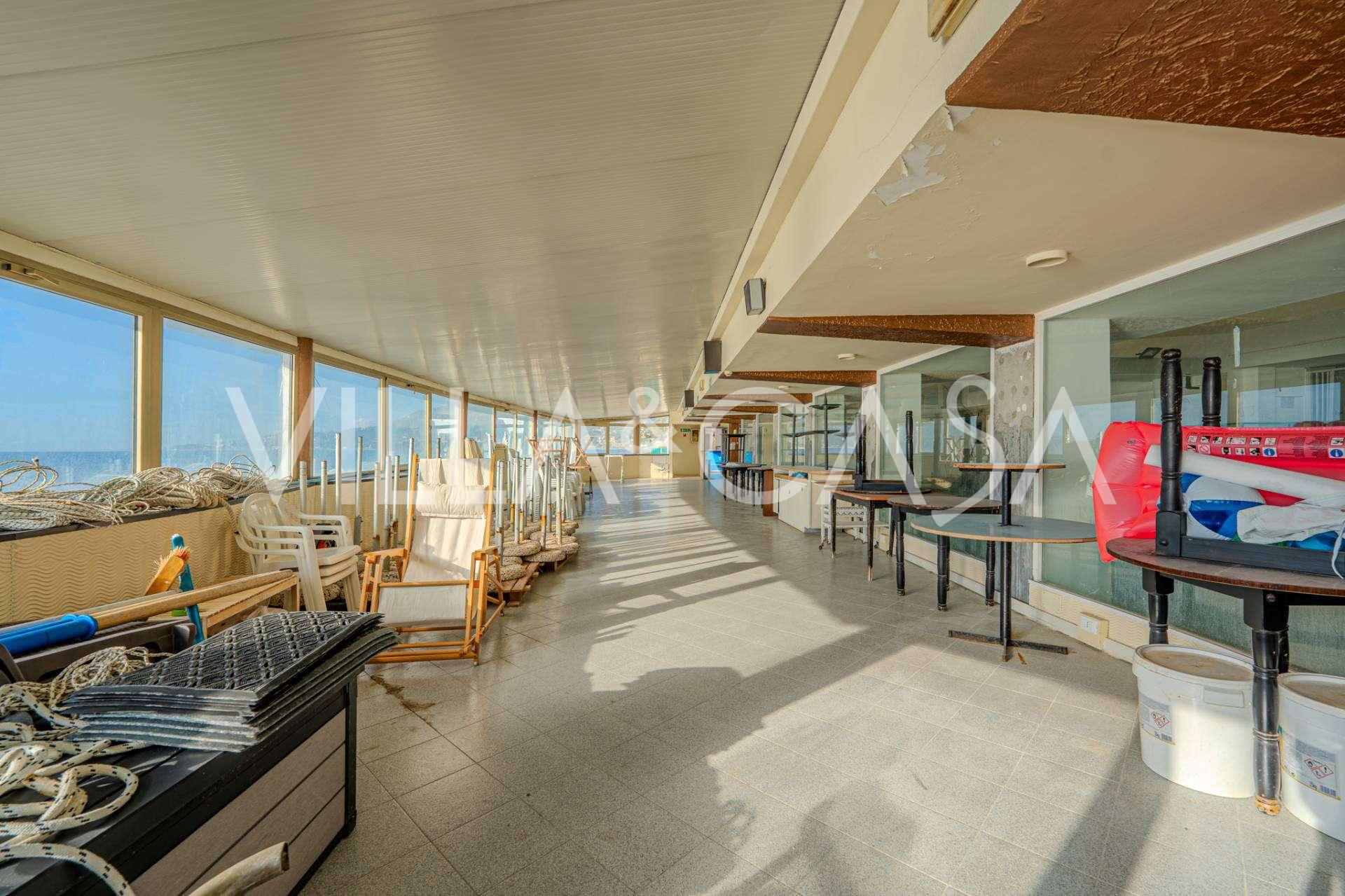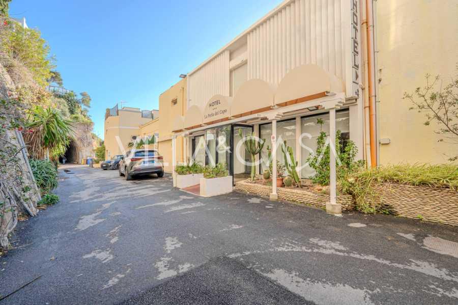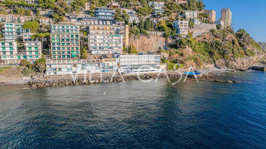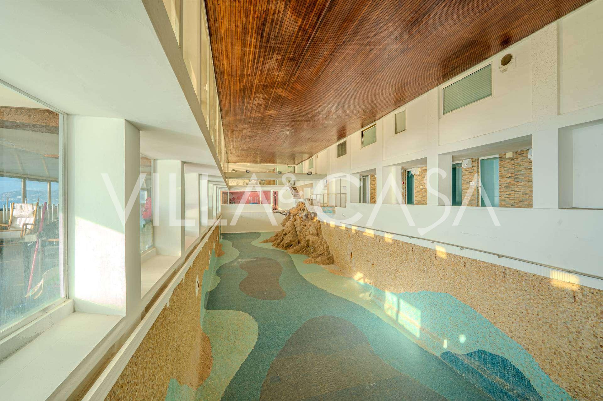 En unik hotel i Ospedaletti er til salg, beliggende på en privilegeret placering ved kysten med direkte adgang til havet og sin egen strand. Herfra er der en fantastisk panoramaudsigt over havets overflade. På klare dage kan man se en del af den Franske Riviera og Lerins-øerne, og i vintermånederne ved daggry kan man skimte Korsika.