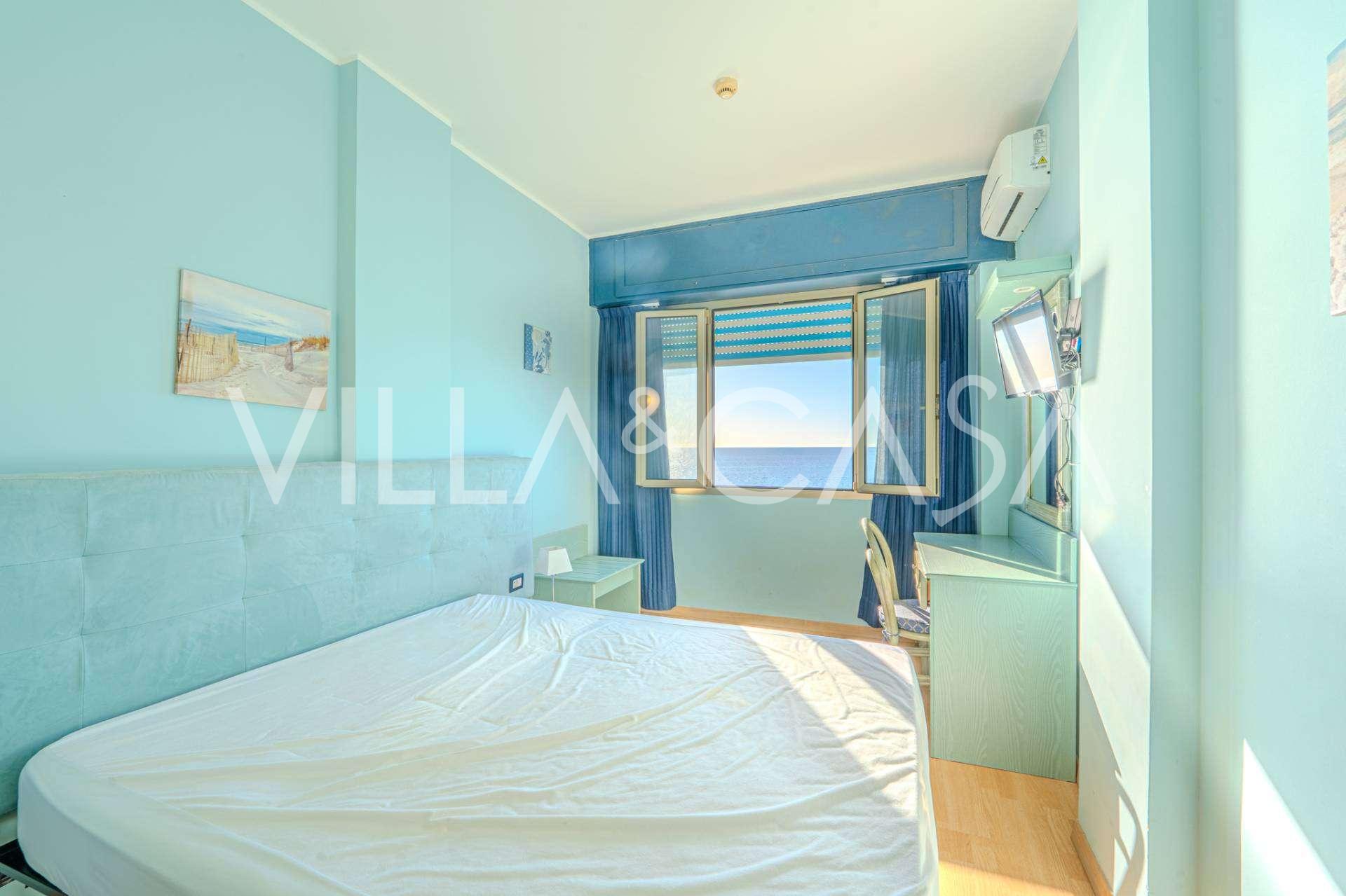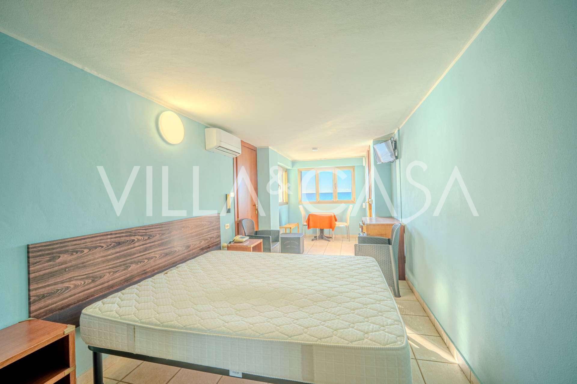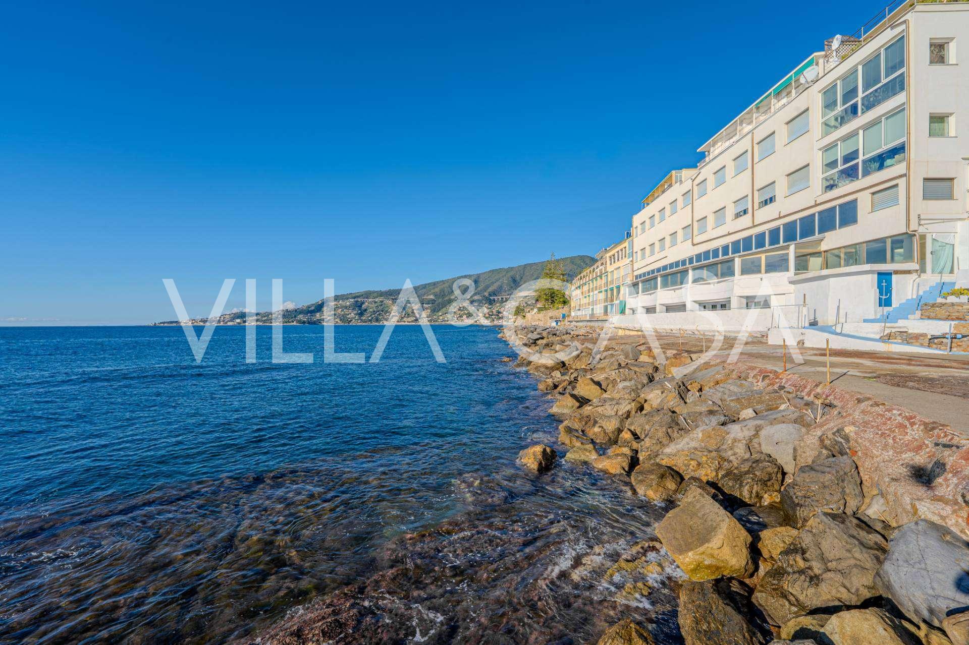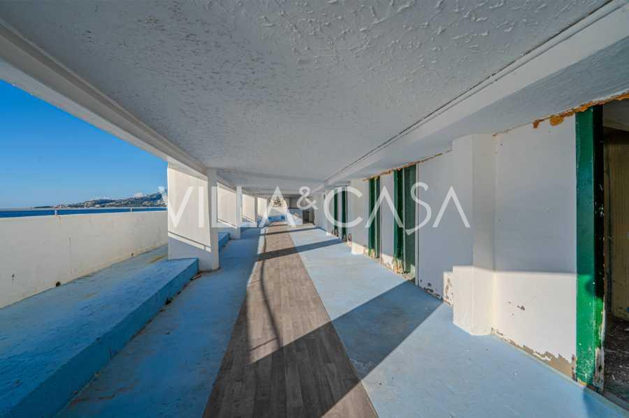 En unik hotel i Ospedaletti er til salg, beliggende på en privilegeret placering ved kysten med direkte adgang til havet og sin egen strand. Herfra er der en fantastisk panoramaudsigt over havets overflade. På klare dage kan man se en del af den Franske Riviera og Lerins-øerne, og i vintermånederne ved daggry kan man skimte Korsika.