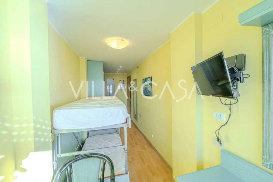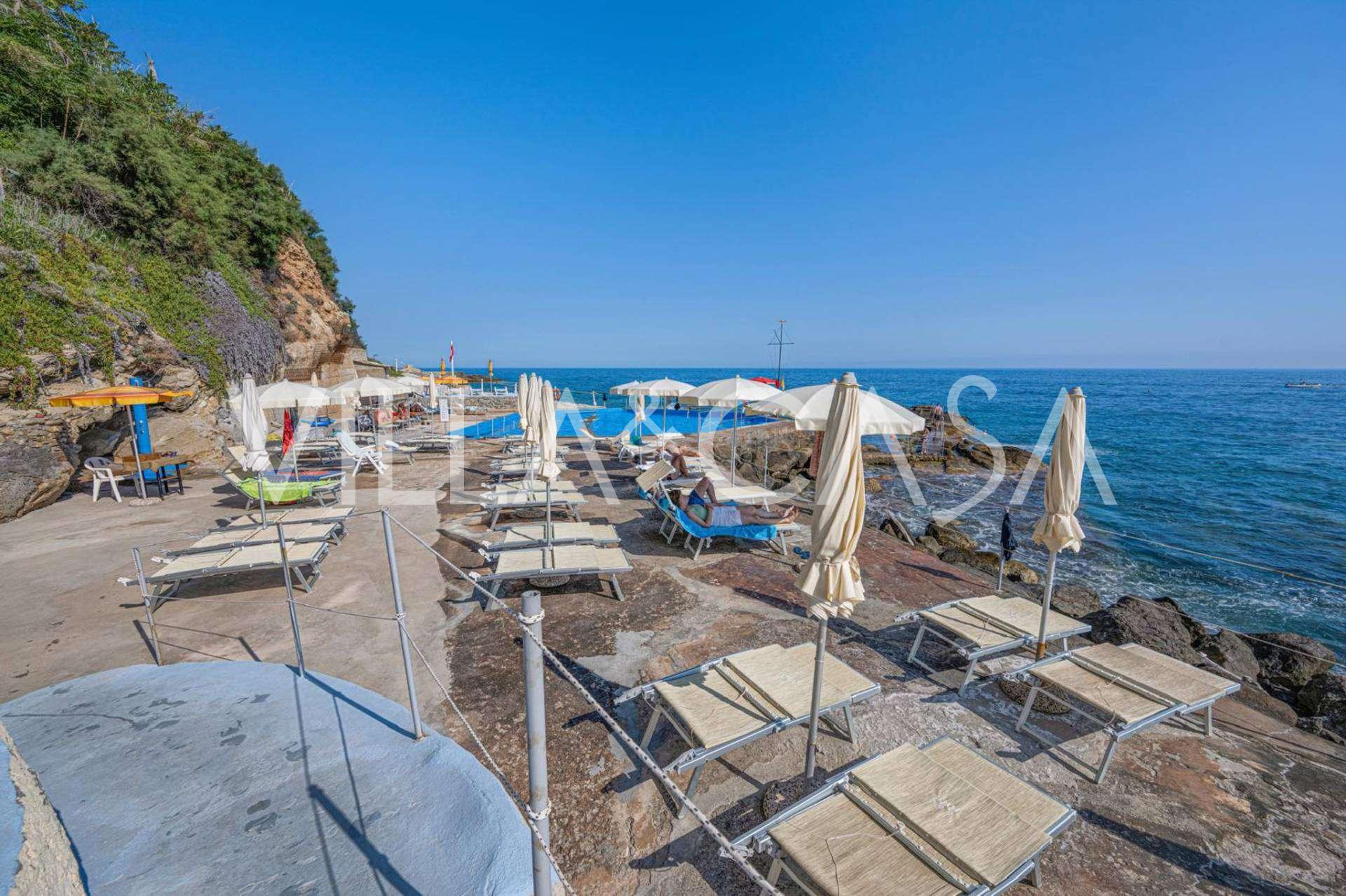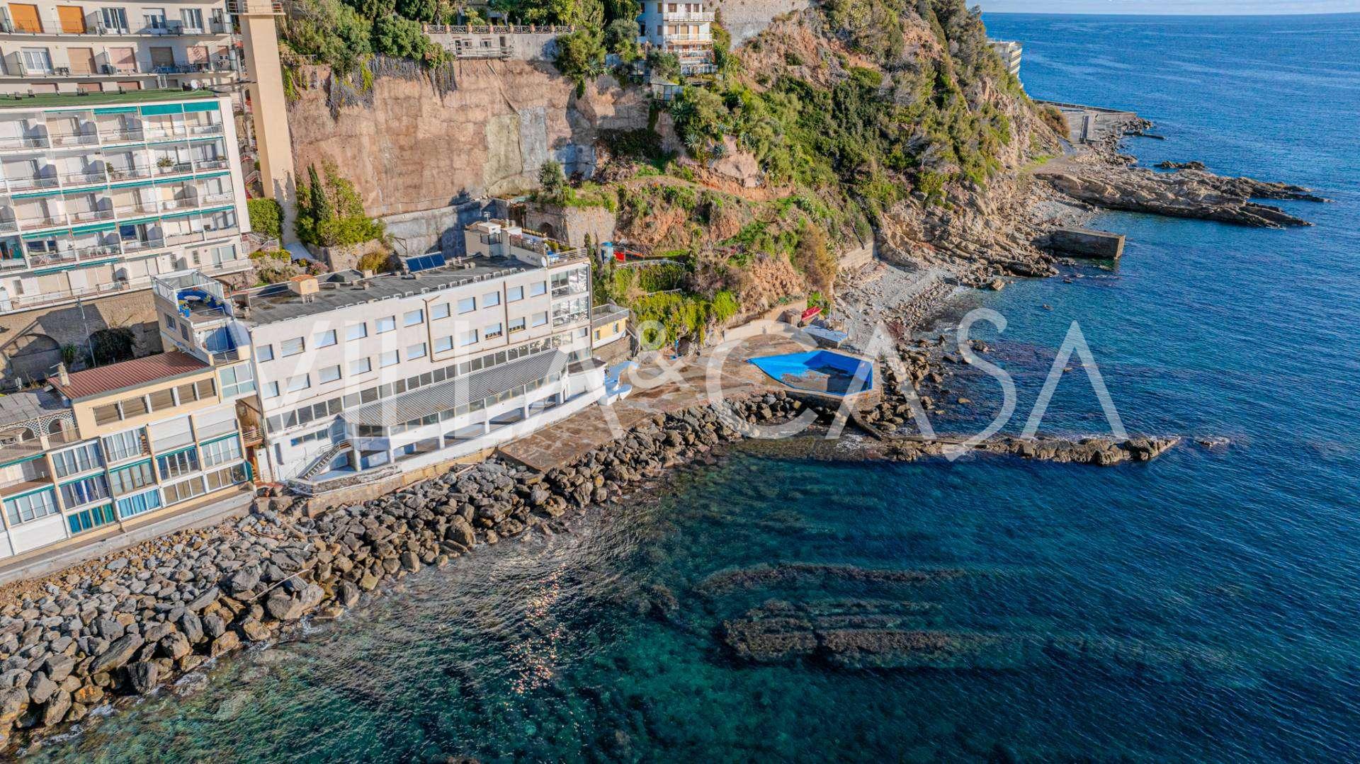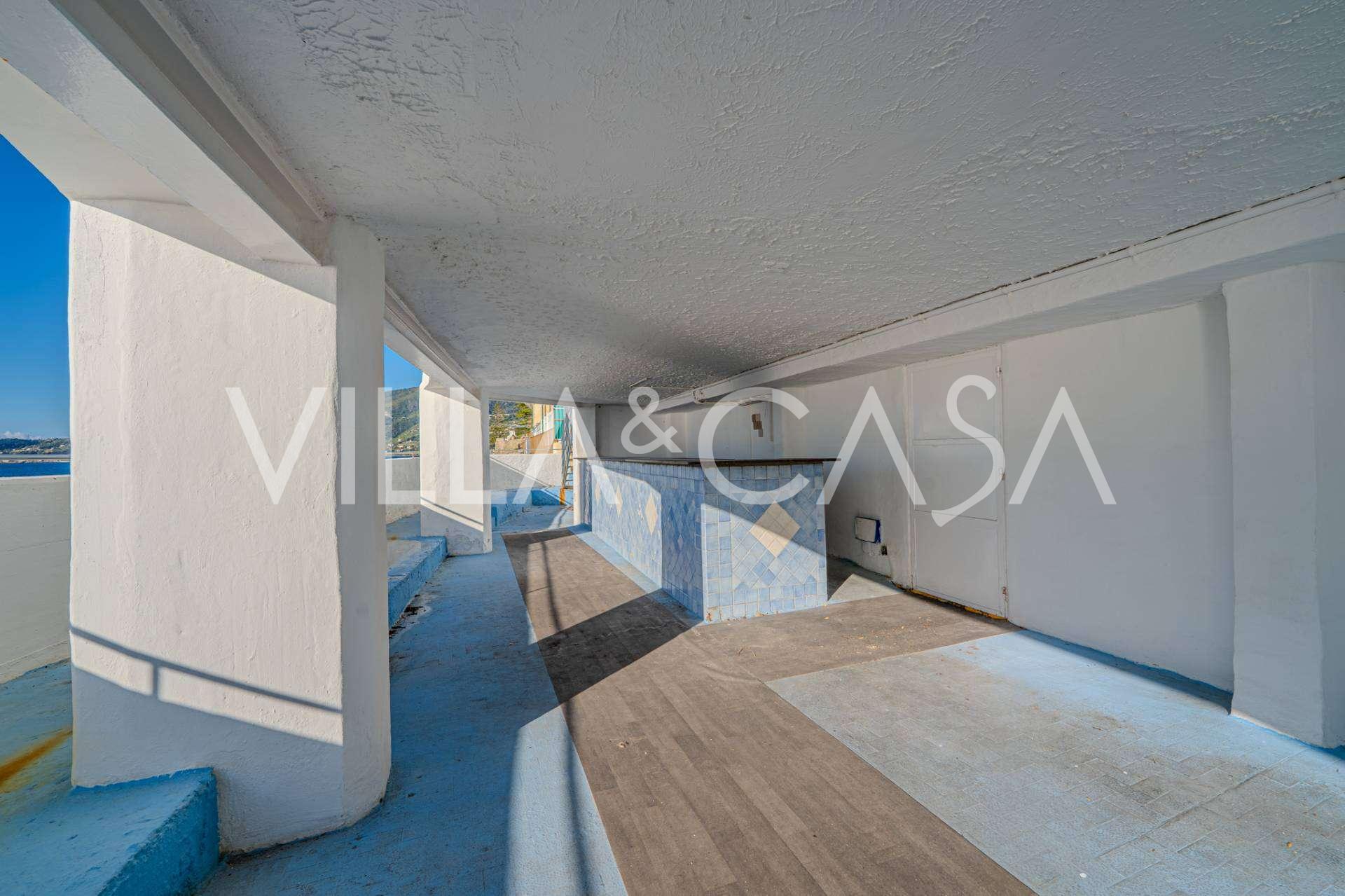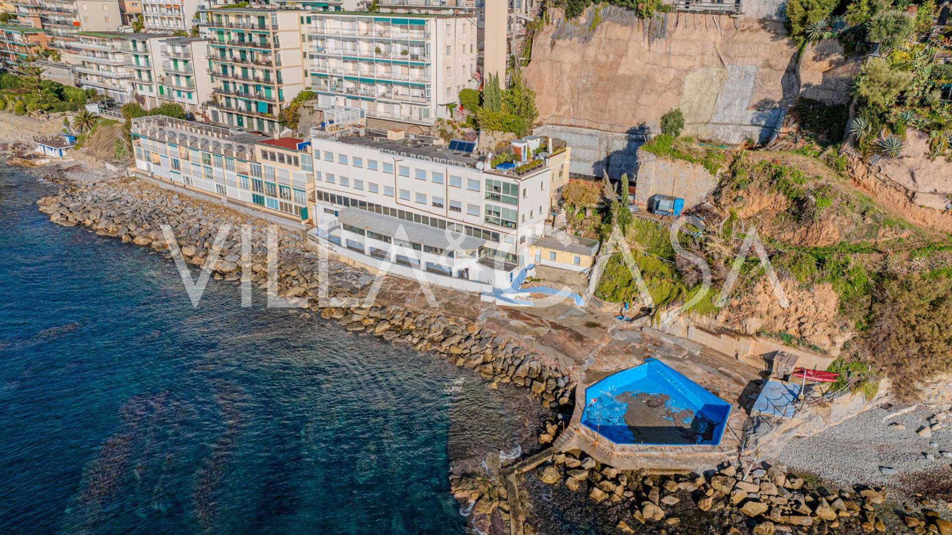 En unik hotel i Ospedaletti er til salg, beliggende på en privilegeret placering ved kysten med direkte adgang til havet og sin egen strand. Herfra er der en fantastisk panoramaudsigt over havets overflade. På klare dage kan man se en del af den Franske Riviera og Lerins-øerne, og i vintermånederne ved daggry kan man skimte Korsika.