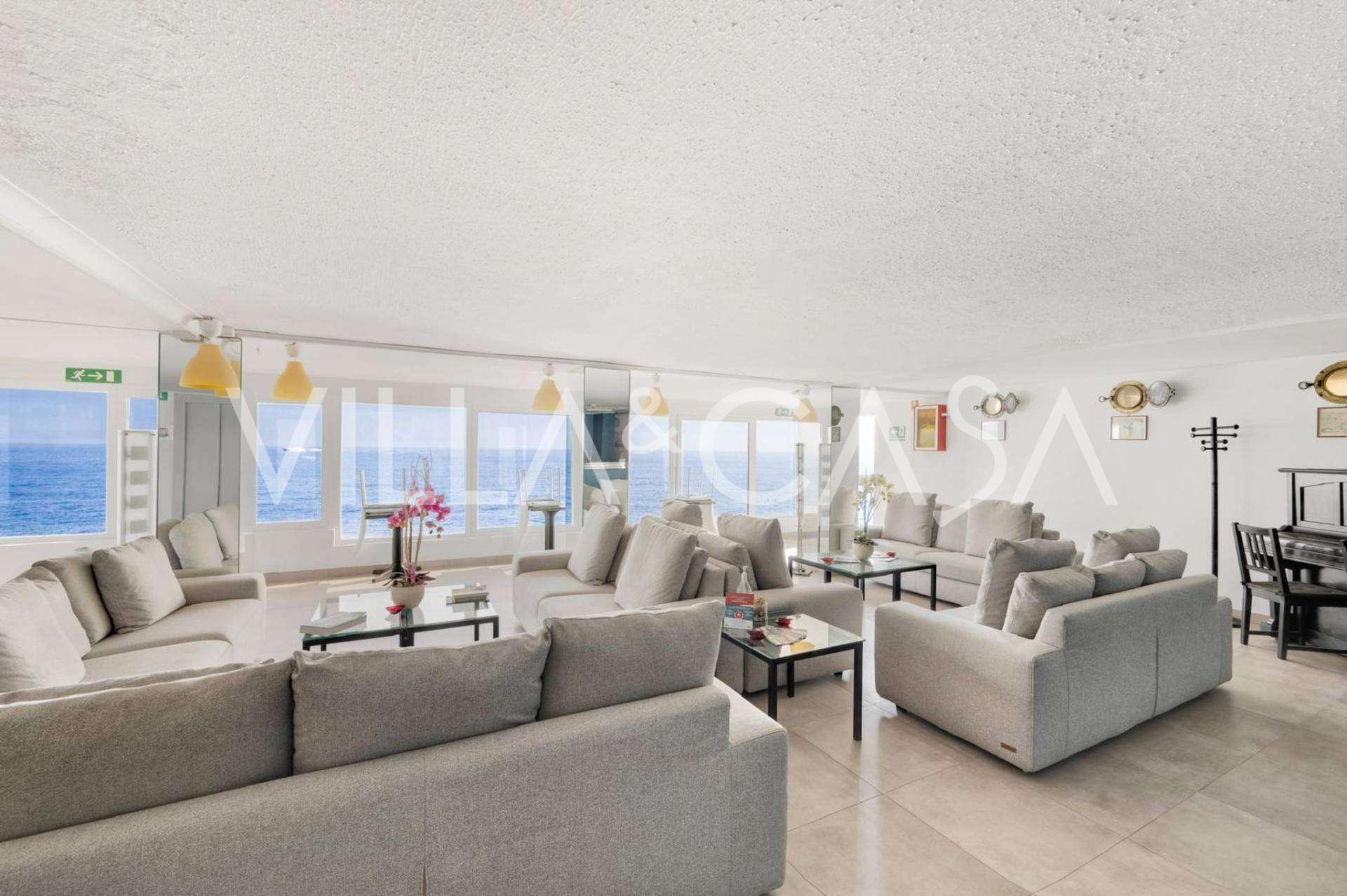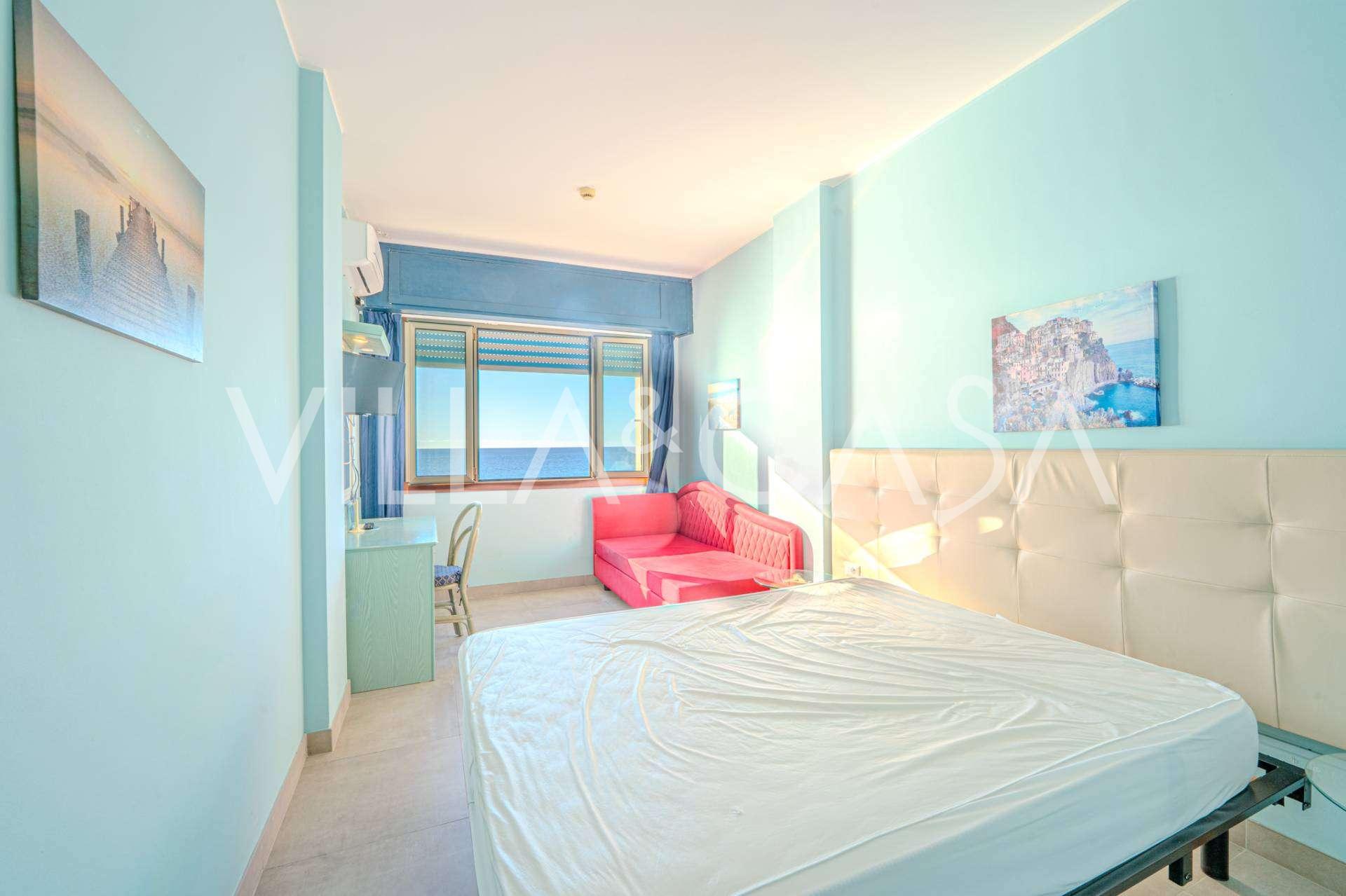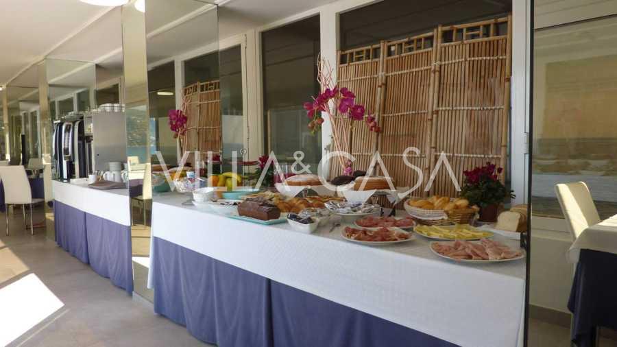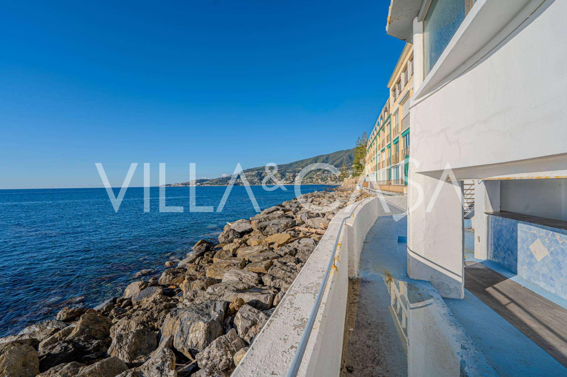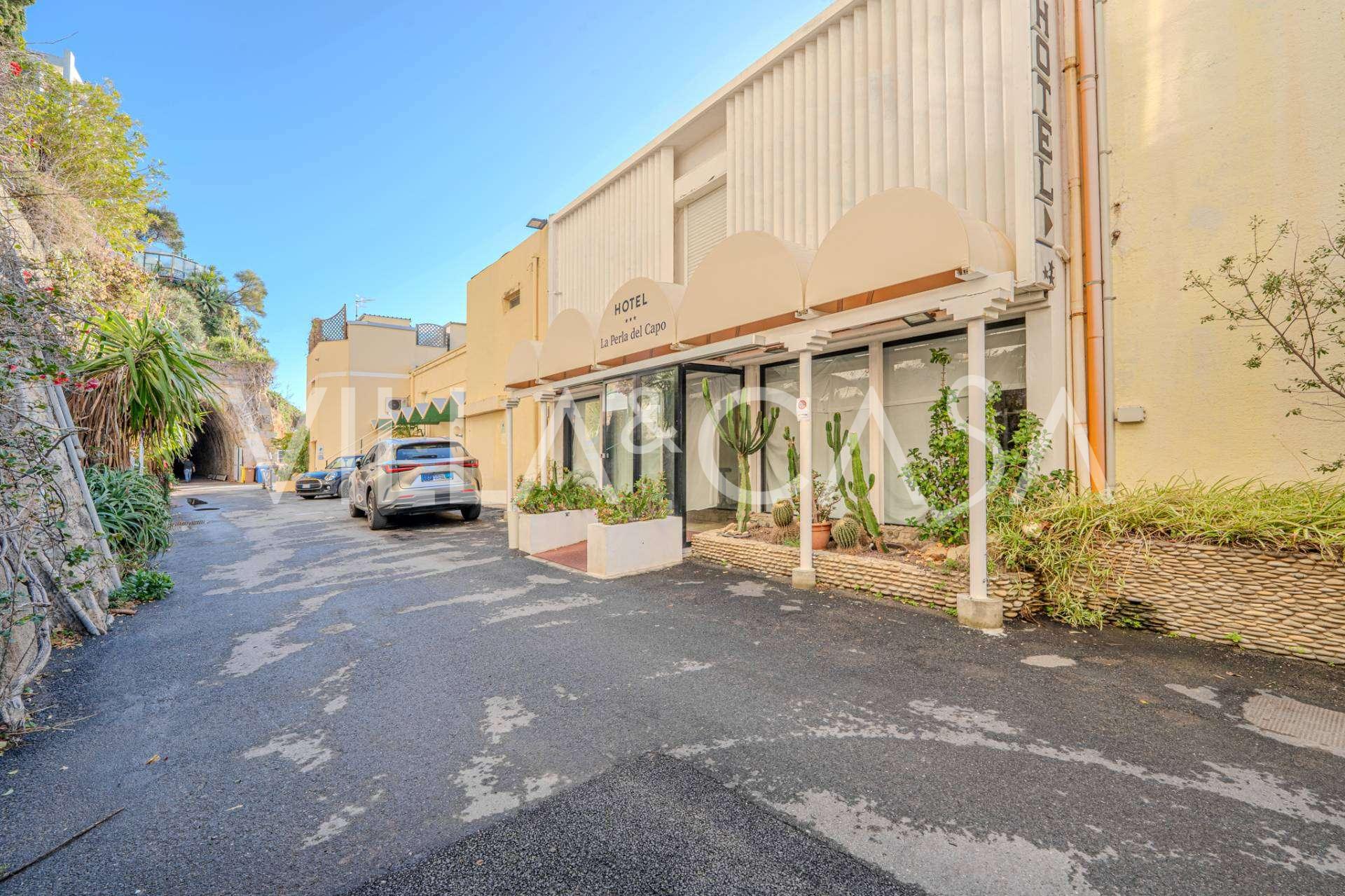 En unik hotel i Ospedaletti er til salg, beliggende på en privilegeret placering ved kysten med direkte adgang til havet og sin egen strand. Herfra er der en fantastisk panoramaudsigt over havets overflade. På klare dage kan man se en del af den Franske Riviera og Lerins-øerne, og i vintermånederne ved daggry kan man skimte Korsika.