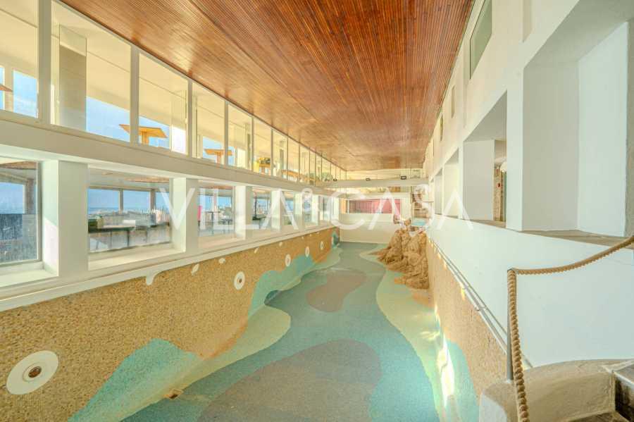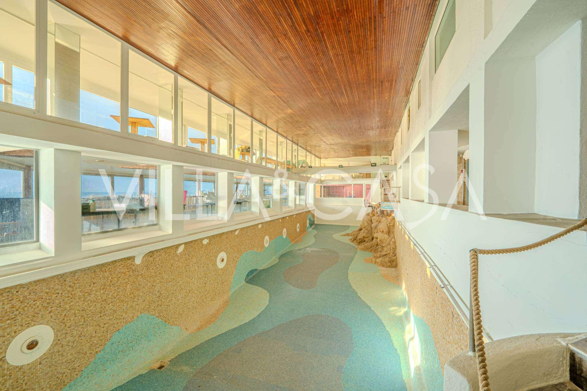 Gæsterne tilbydes en indendørs swimmingpool på omkring 25 meter med opvarmet havvand. Hotellet har også en privat strand med direkte adgang til havet, der inkluderer en pool med havvand, et område med liggestole og parasoller samt en stenstrand, der kan rumme 100-110 personer, både for hotellets gæster og besøgende udefra. I sommersæsonen åbner en snackbar med lette snacks samt et skønheds- og thalassoterapicenter.
