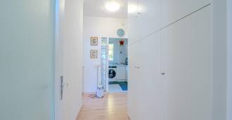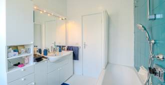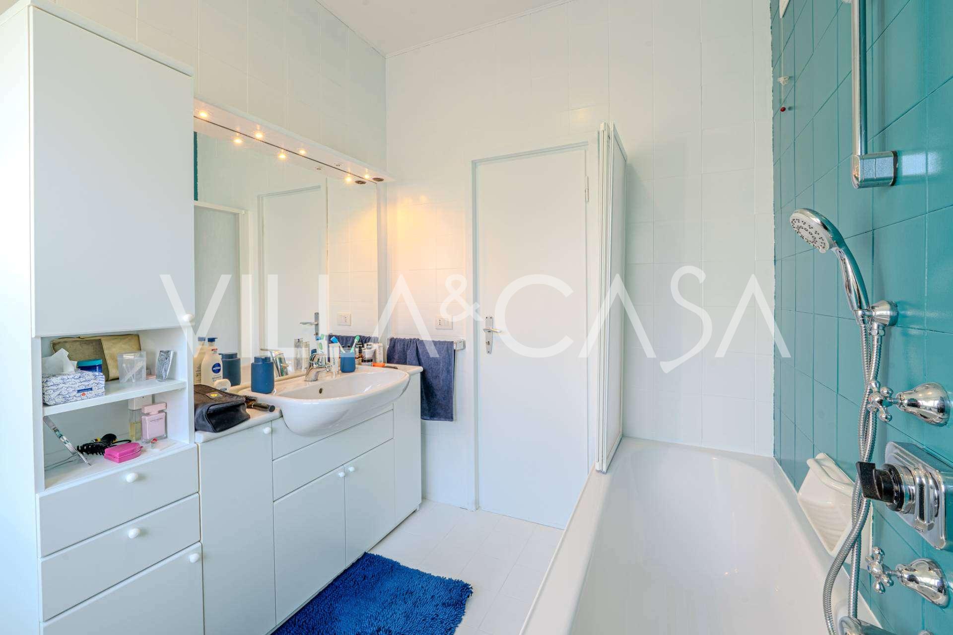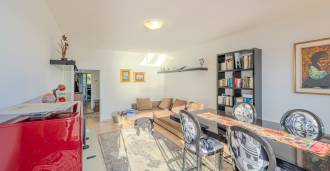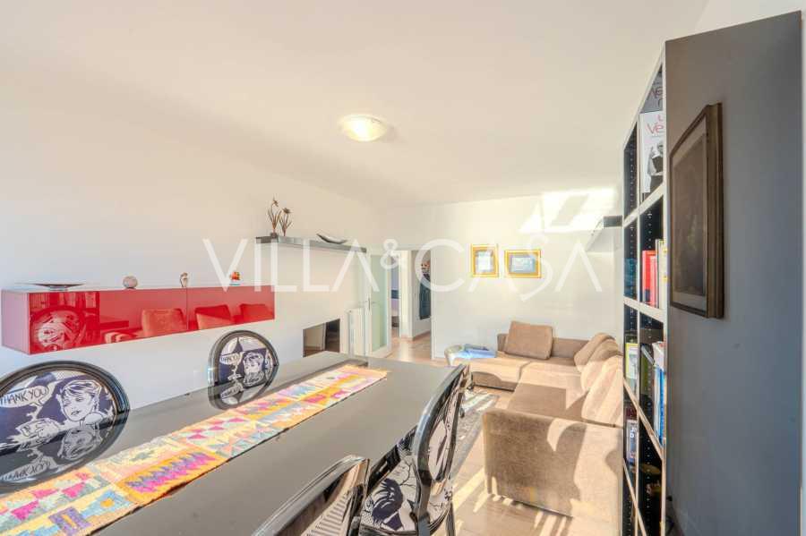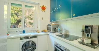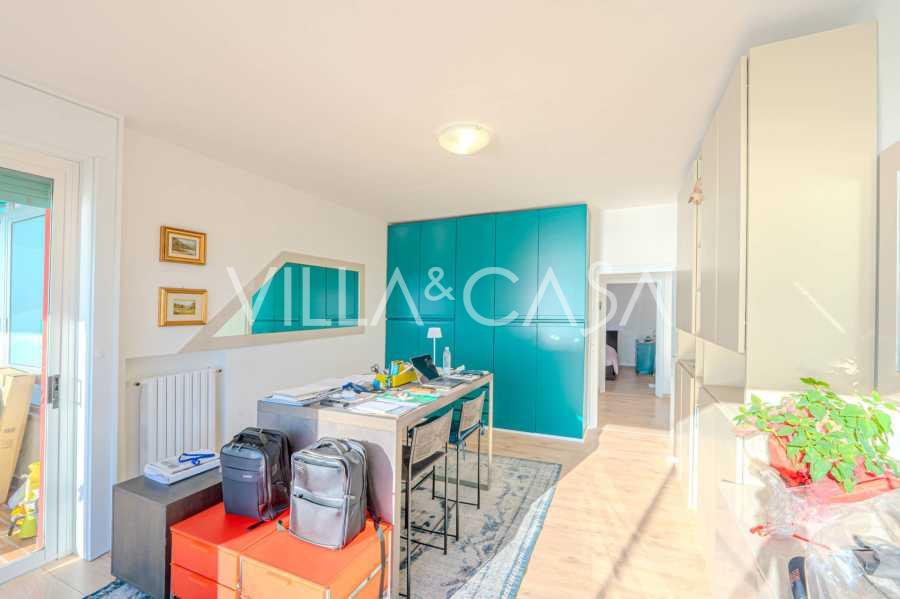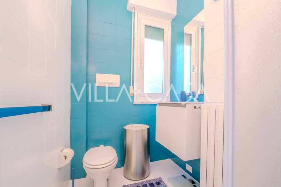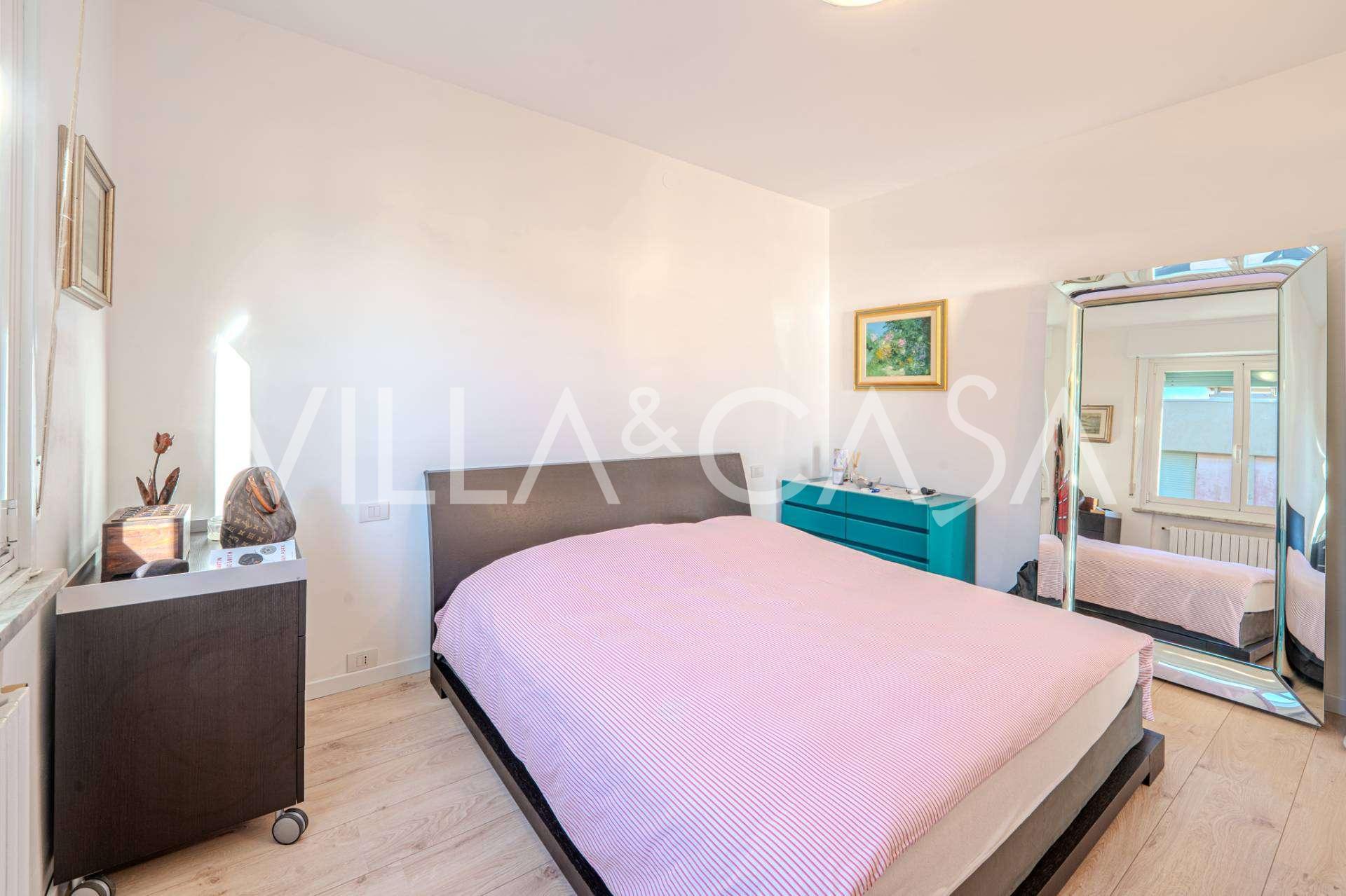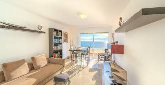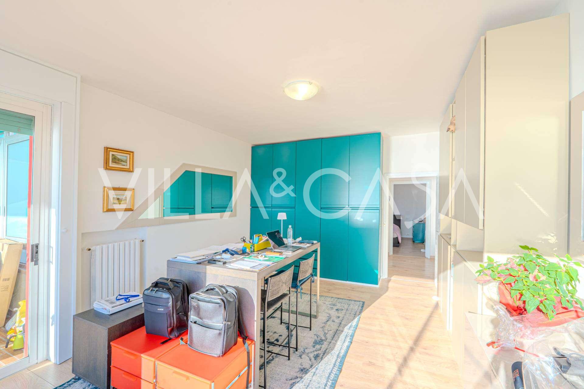 En penthouse med en rummelig terrasse på 143 m² (123 m² boligareal + 20 m² garage) tilbydes direkte ved havet. Den elegante penthouse, fuldstændig renoveret i 2023, er beliggende på 5. sal i en bygning med concierge. Lejligheden er orienteret mod sydøst og har en stor terrasse, der skaber en lys og hyggelig atmosfære.