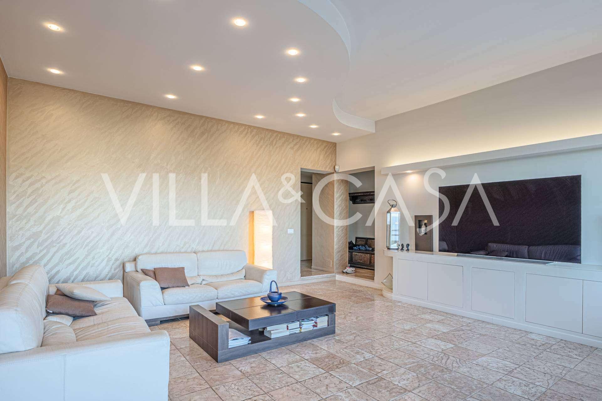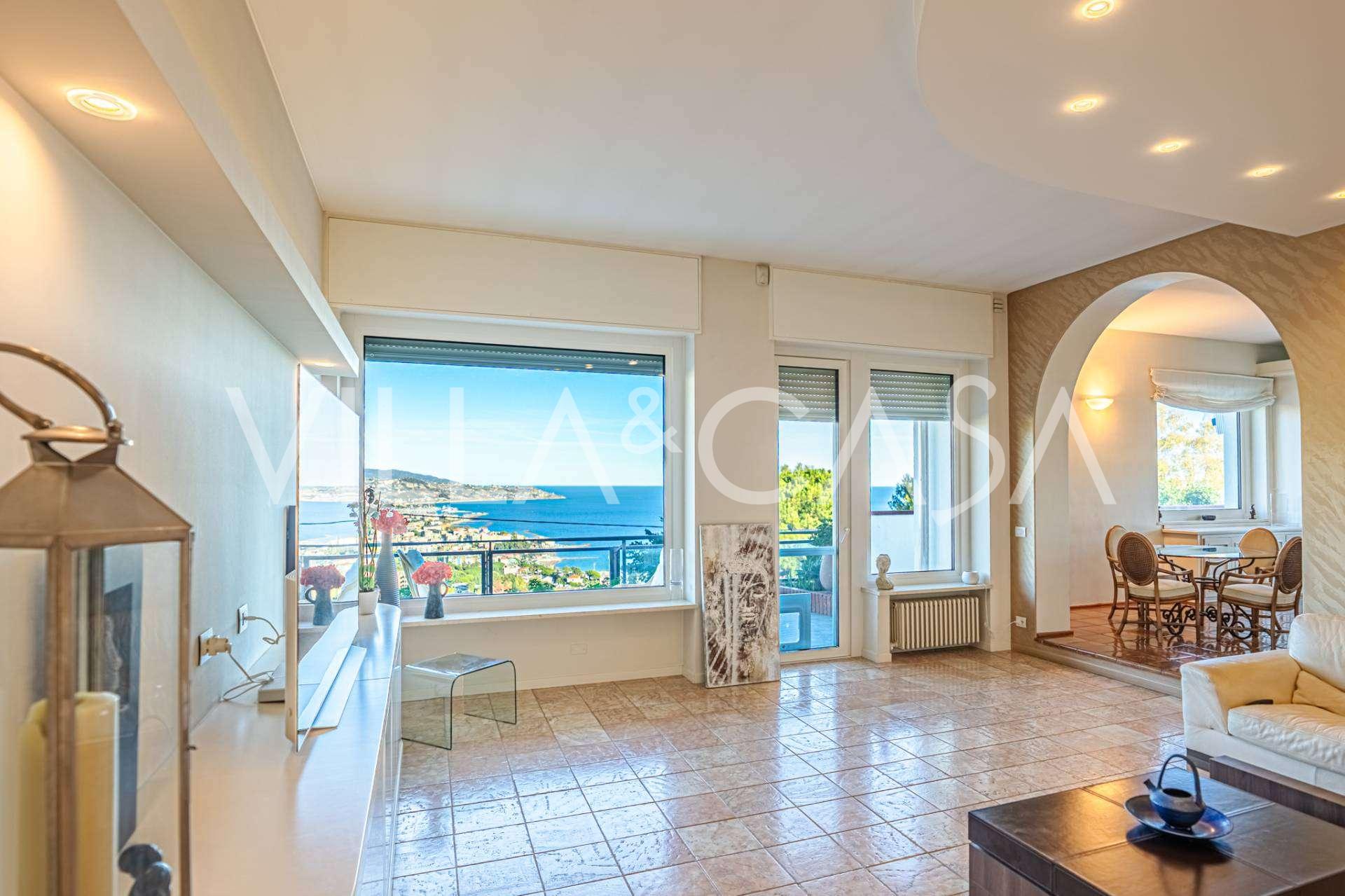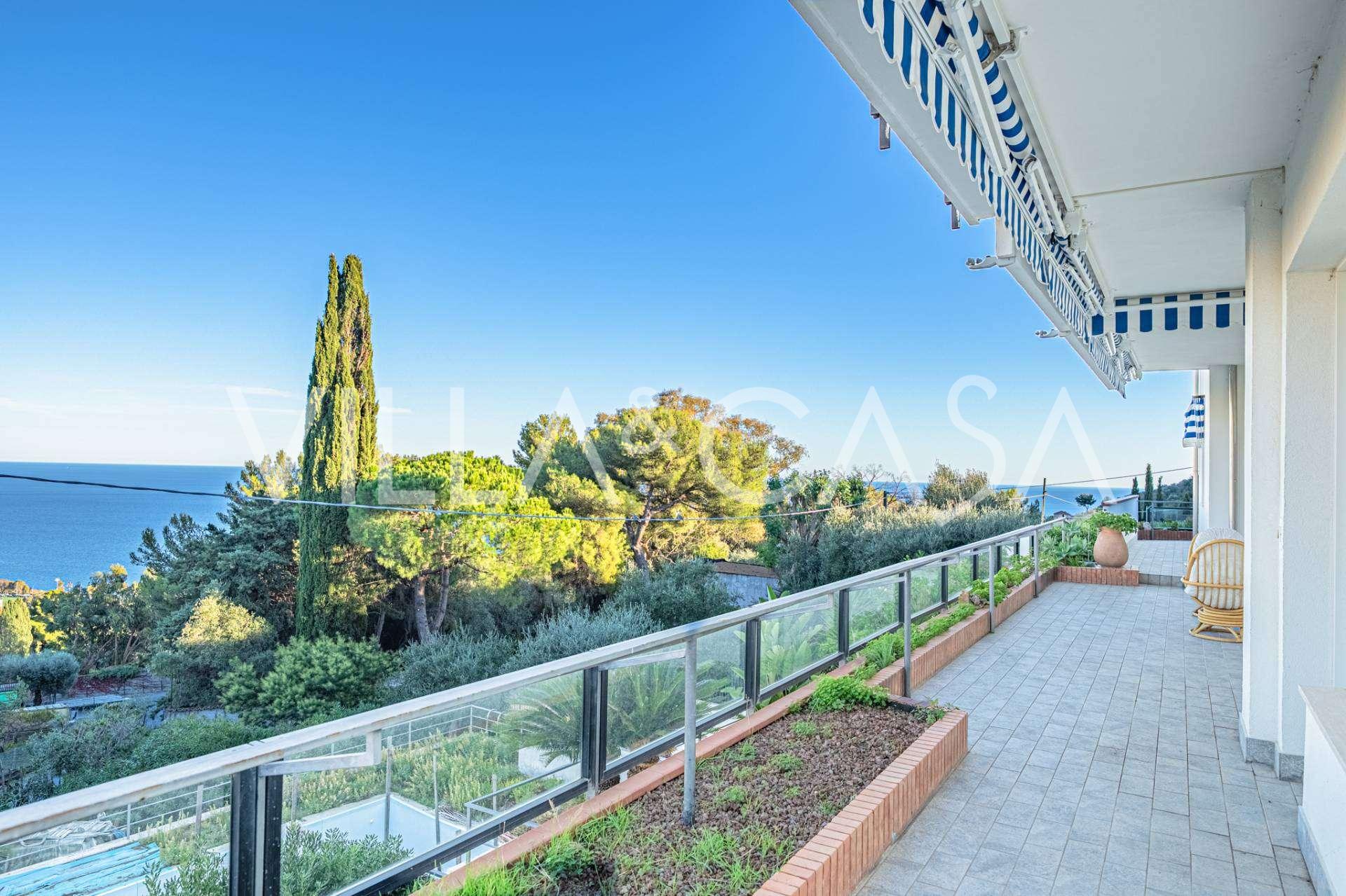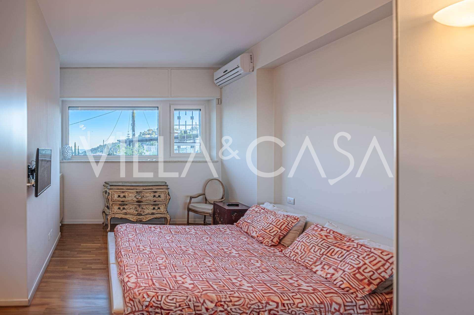En luksuriøs lejlighed på 161 m² med en betagende havudsigt er til salg. Den er beliggende på første sal i en elegant privat villa med pool og bekvem parkering.