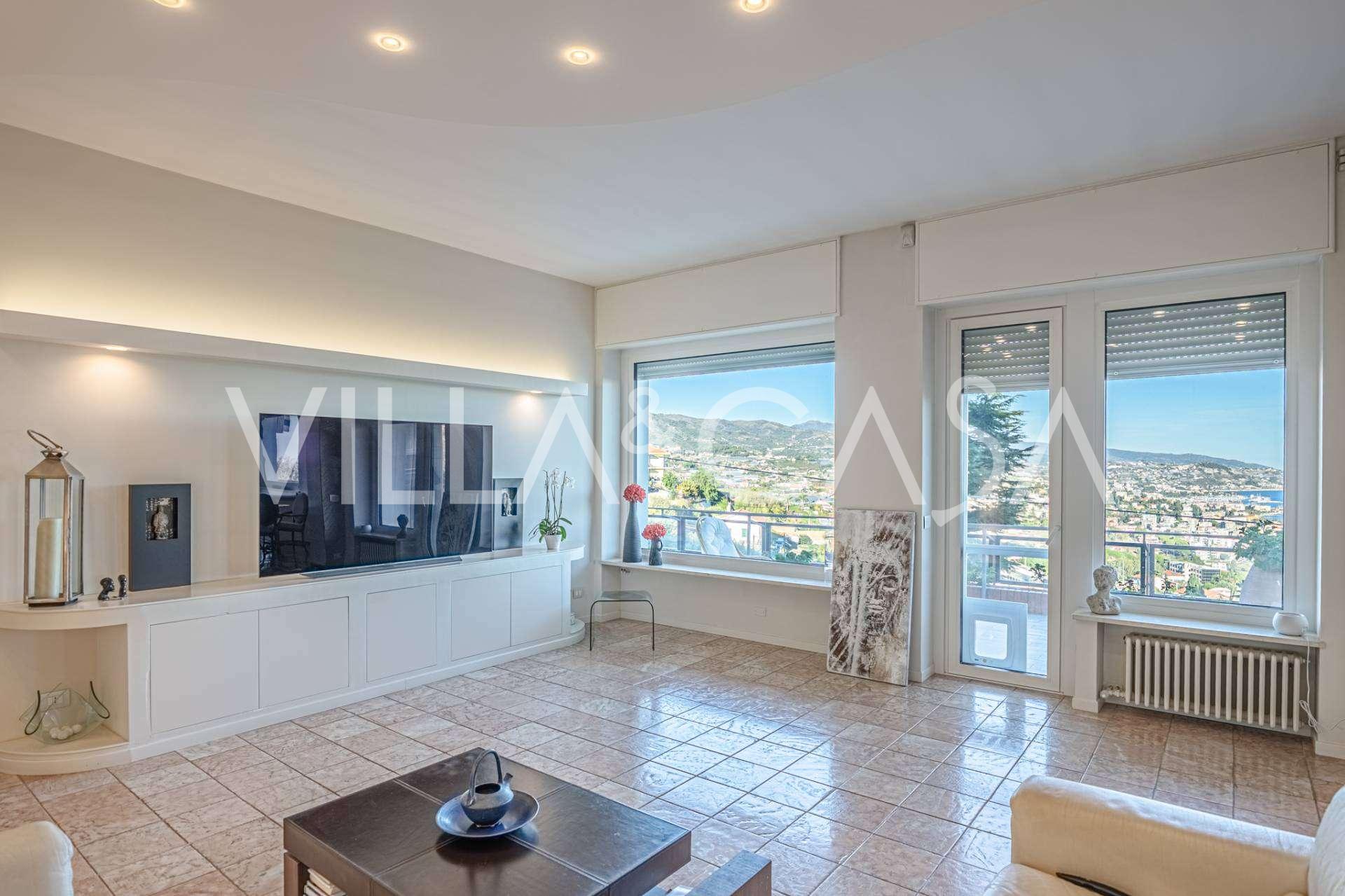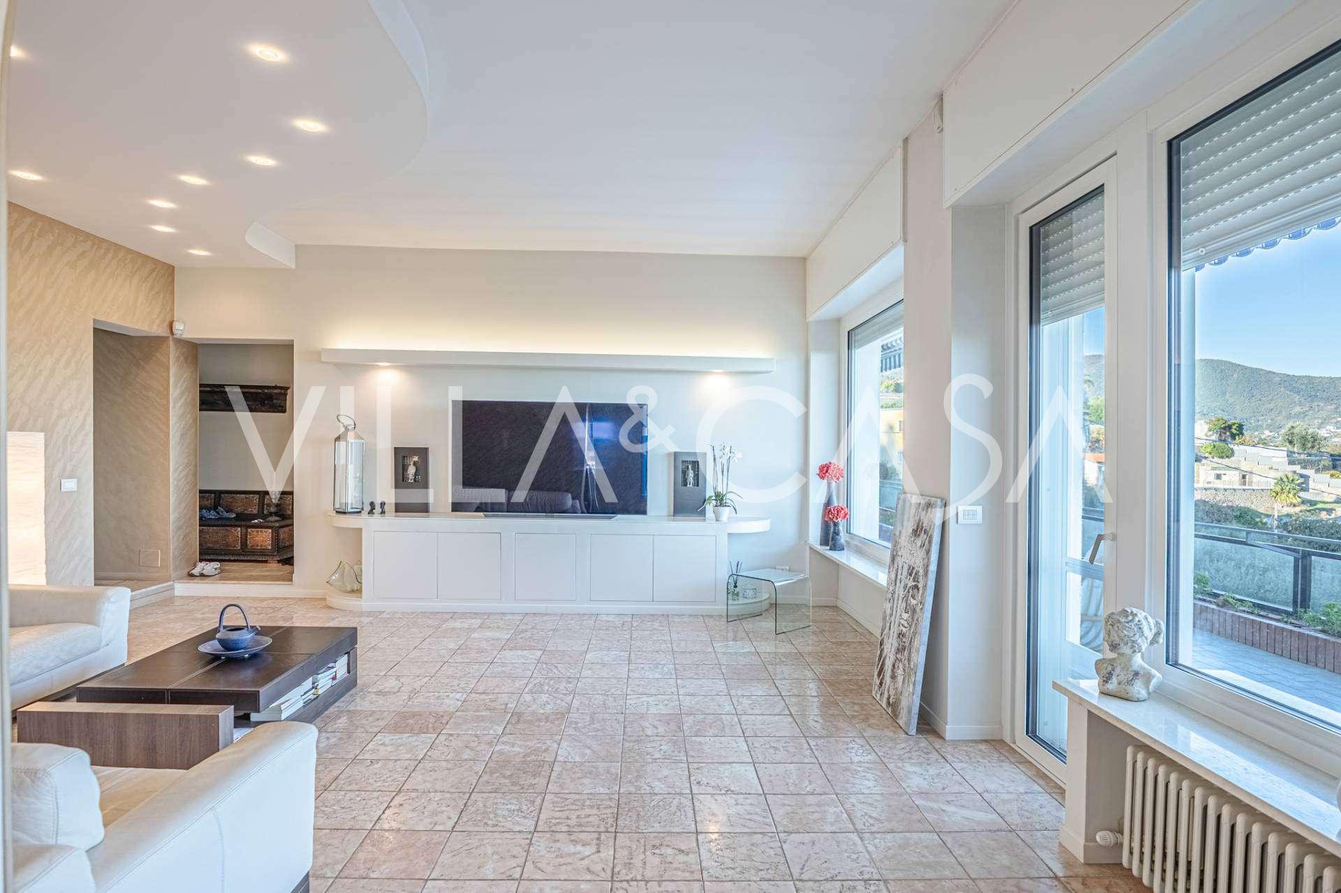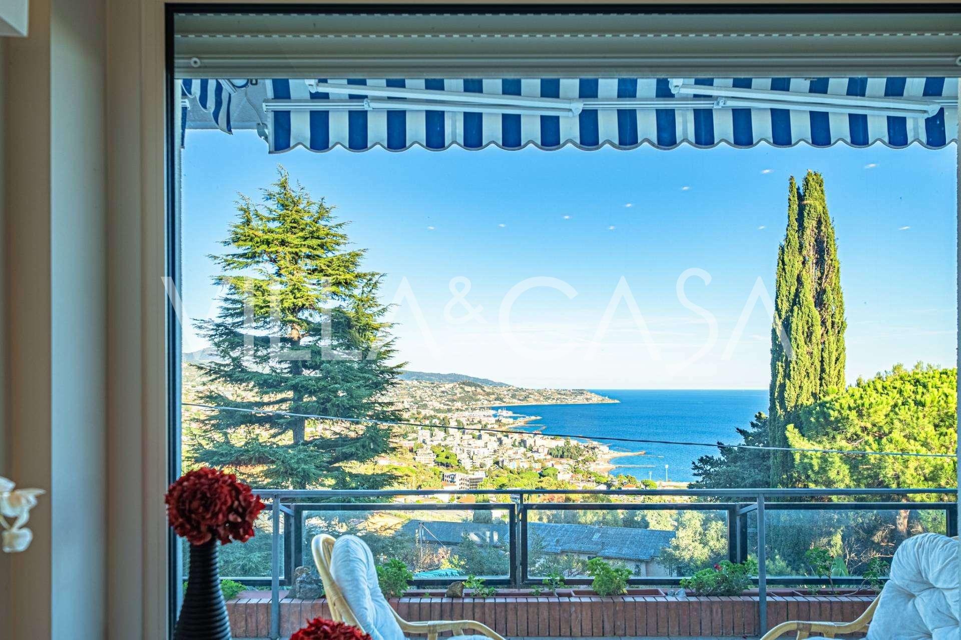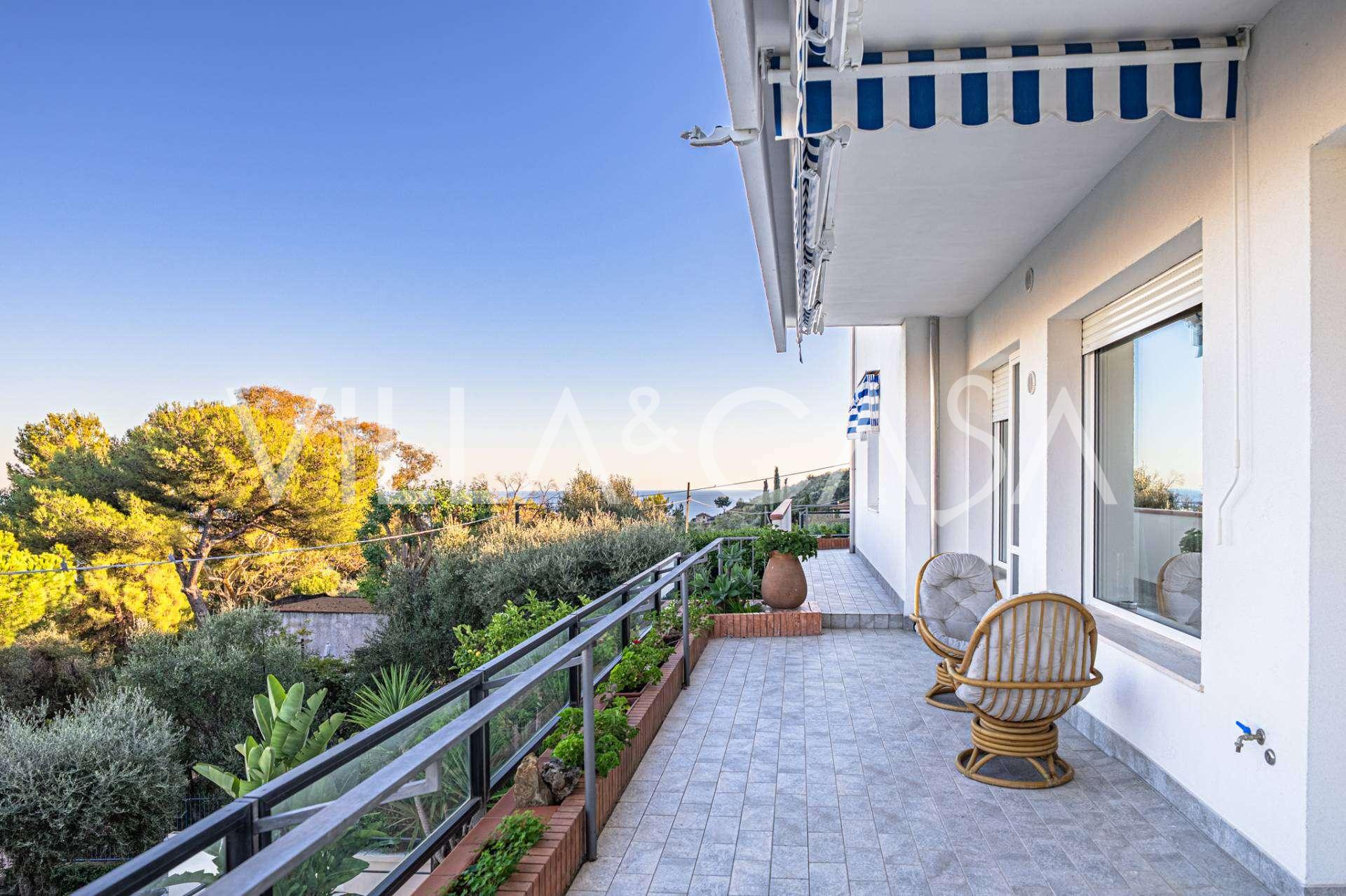 En luksuriøs lejlighed på 161 m² med en betagende havudsigt er til salg. Den er beliggende på første sal i en elegant privat villa med pool og bekvem parkering.