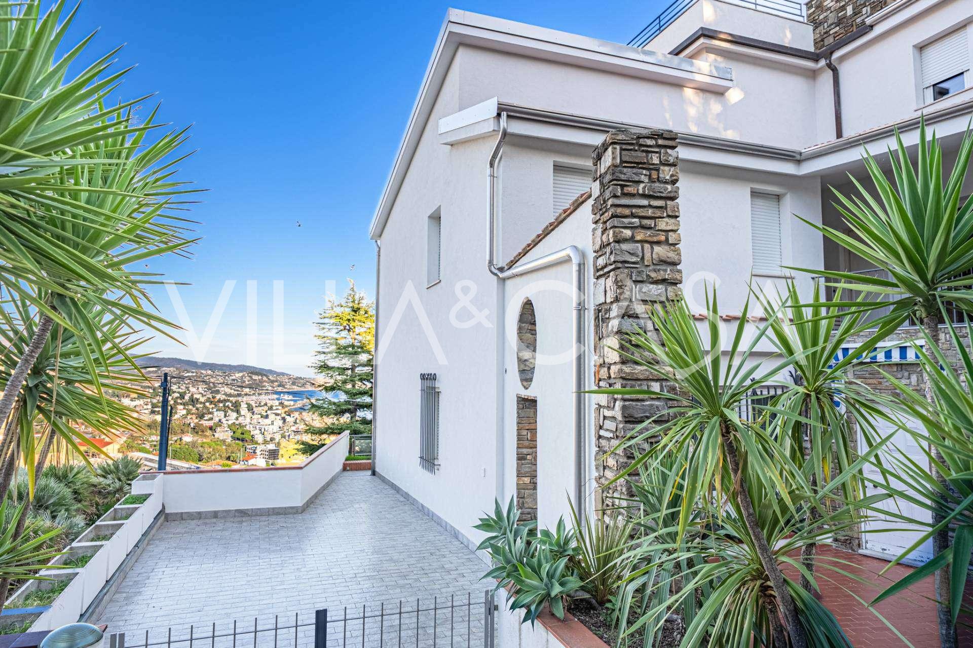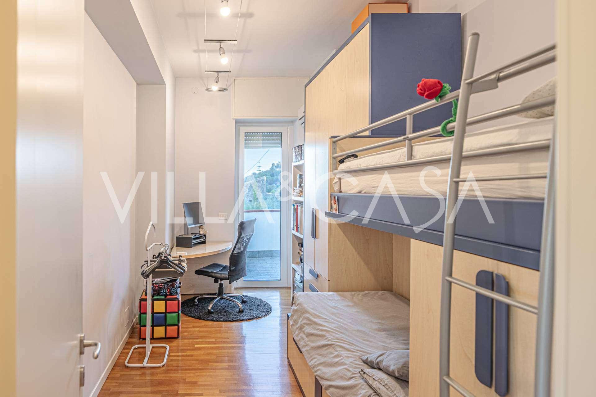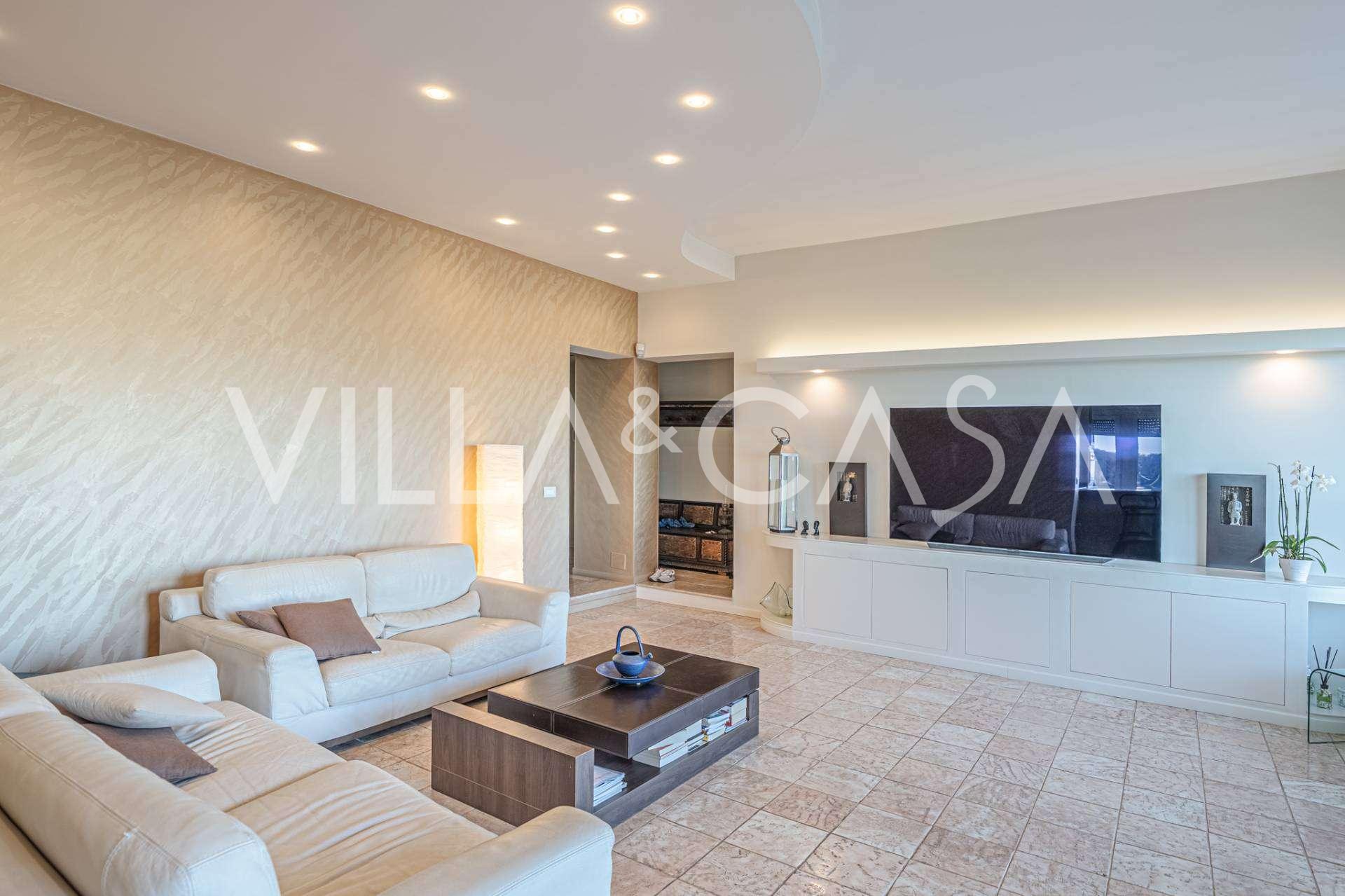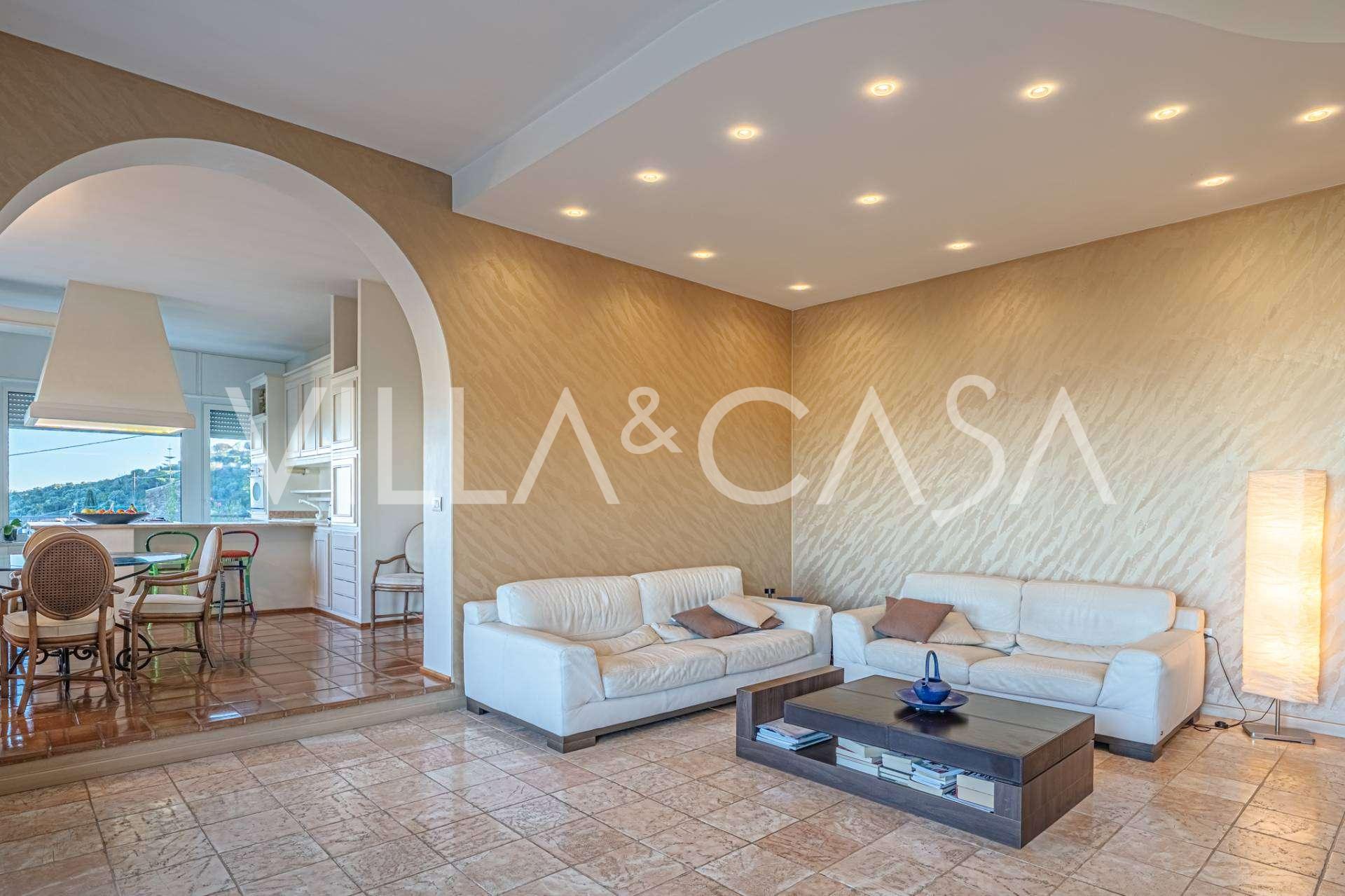 En luksuriøs lejlighed på 161 m² med en betagende havudsigt er til salg. Den er beliggende på første sal i en elegant privat villa med pool og bekvem parkering.