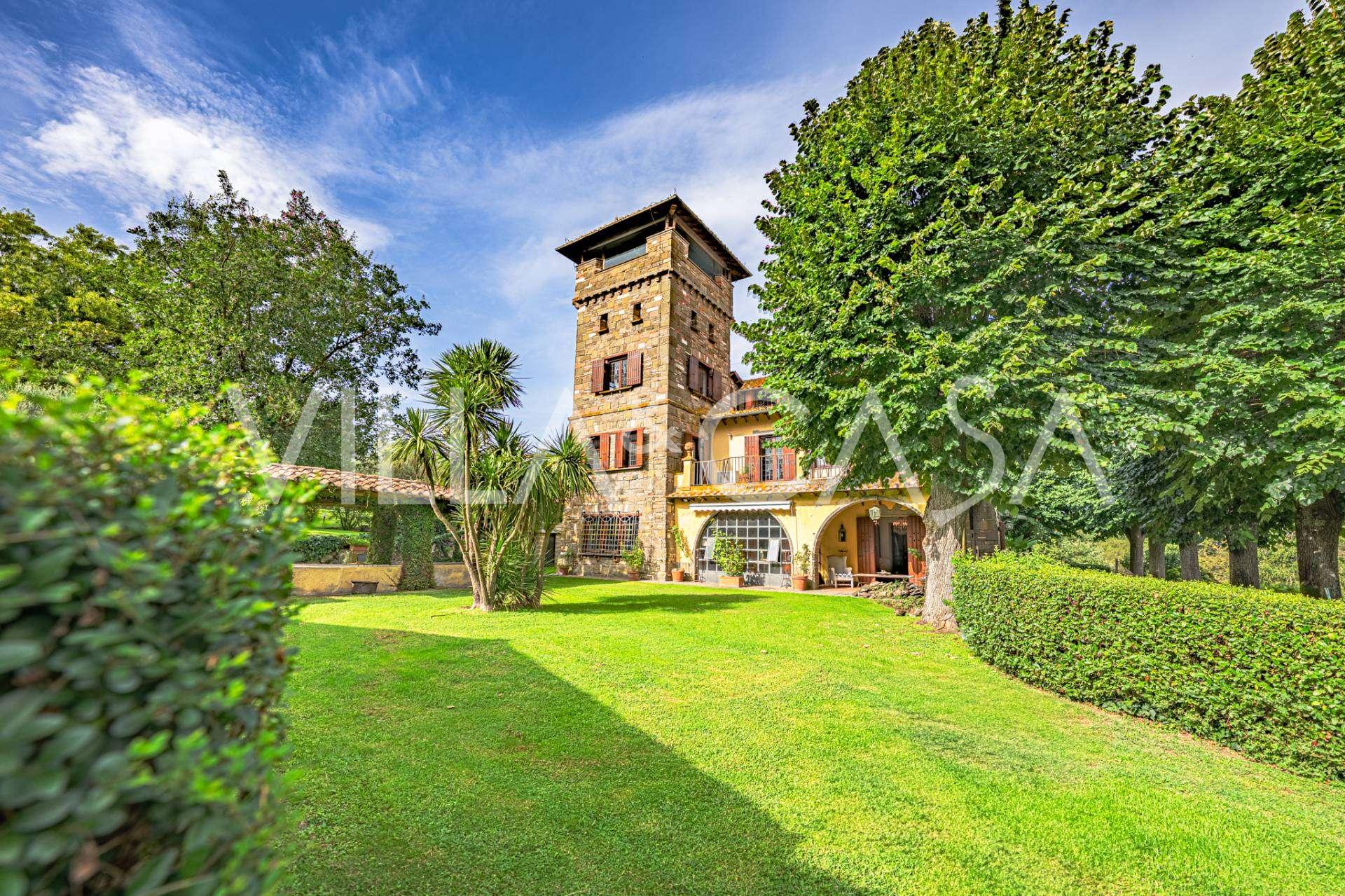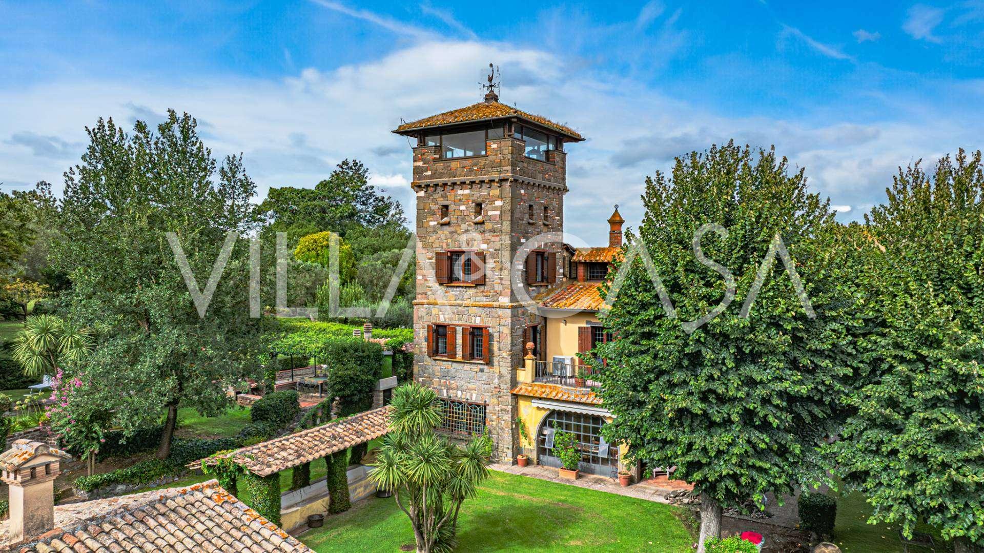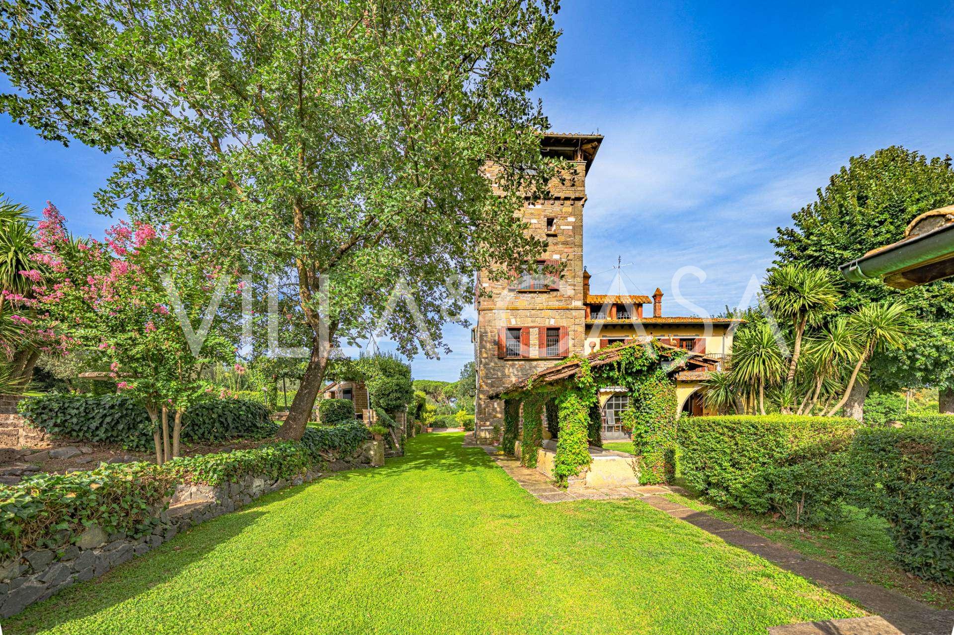 Luksuriøs herregård fra det 19. århundrede med tårn, omgivet af grønne områder, tæt på Rom