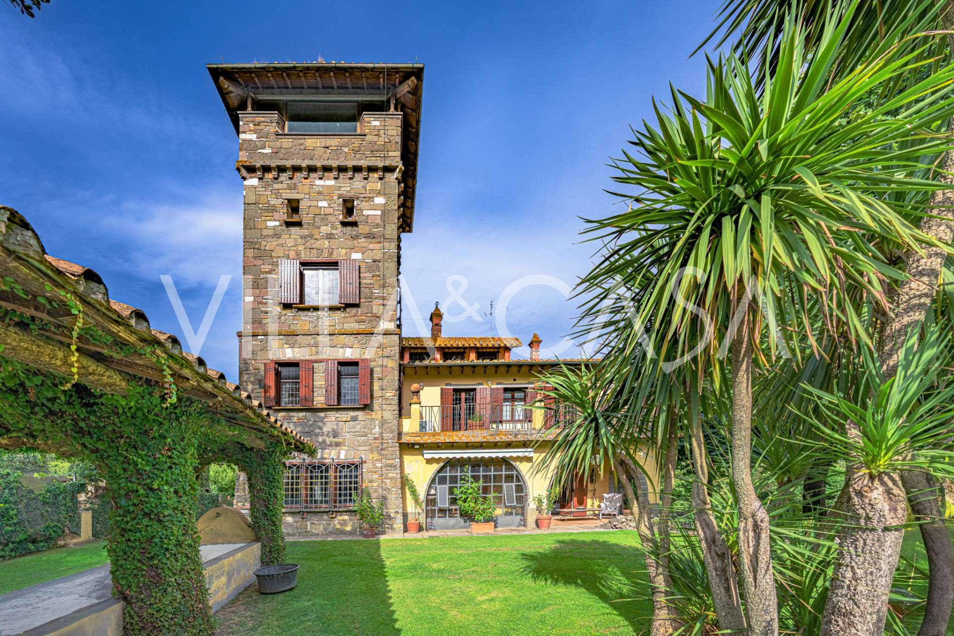 Villaen er omgivet af en velplejet park på 5.000 m², og det samlede bebyggede areal udgør omkring 1.000 m². Hovedbygningen på omkring 500 m² strækker sig over fem niveauer, hvoraf tre tilhører det gamle tårn.