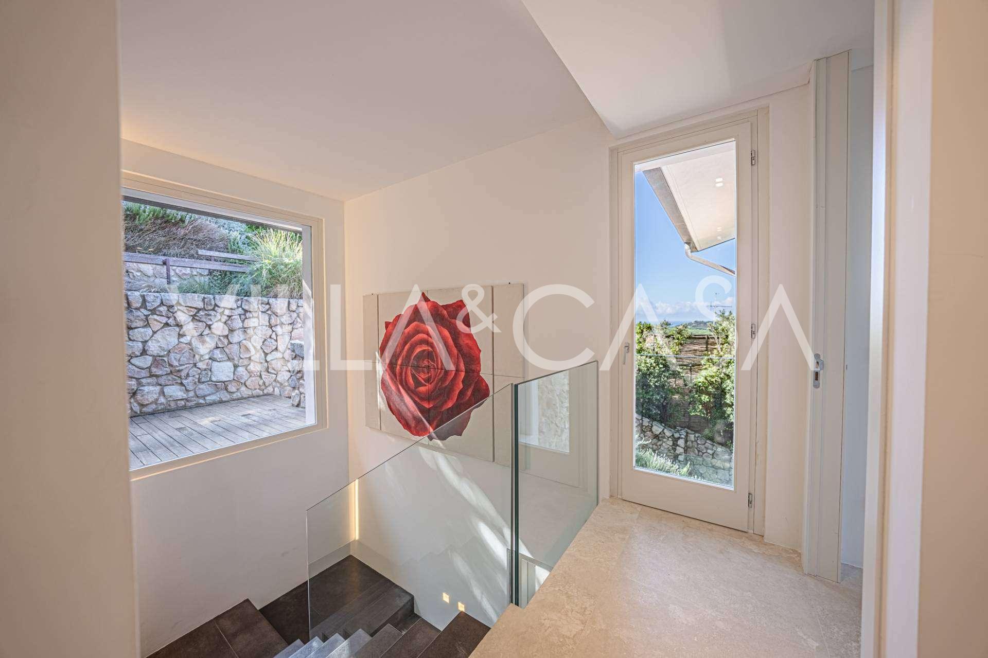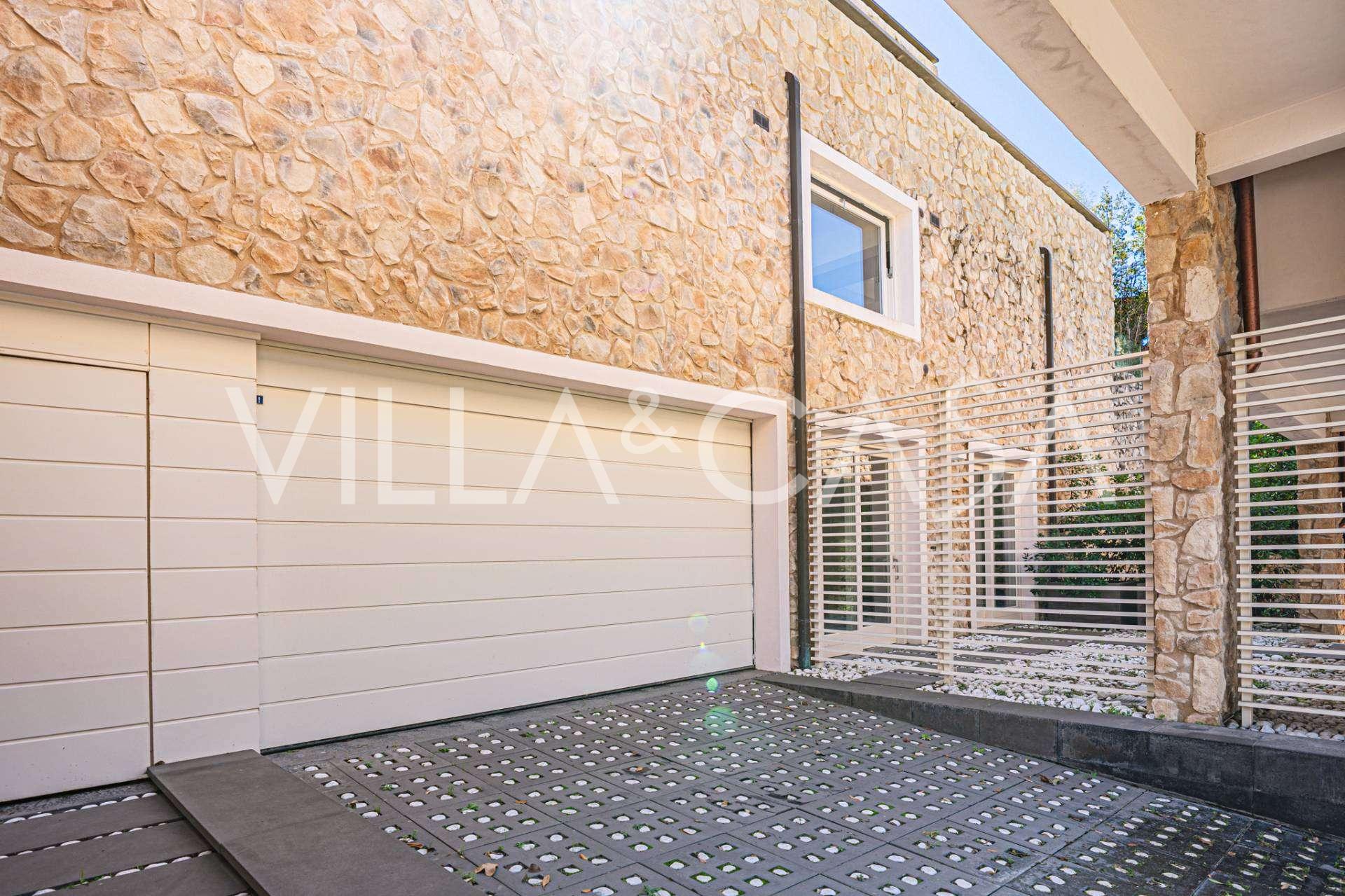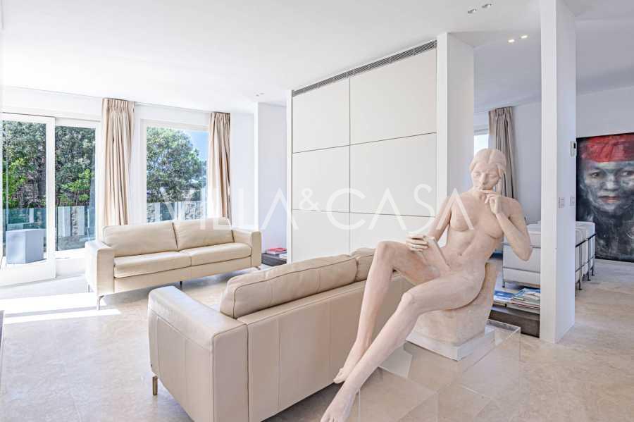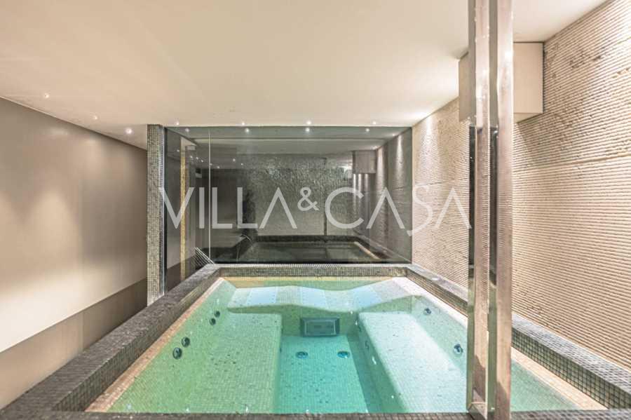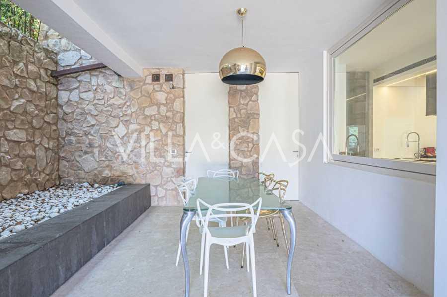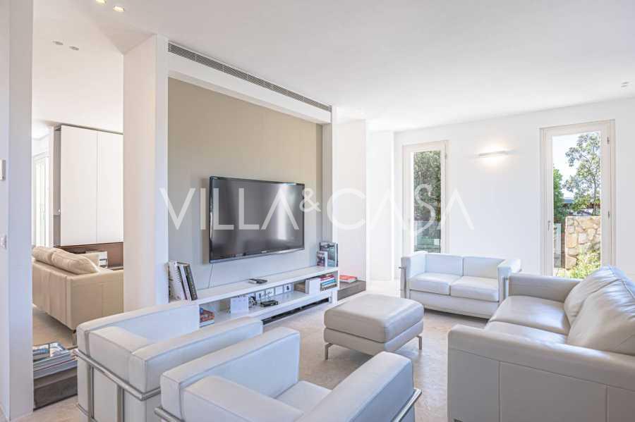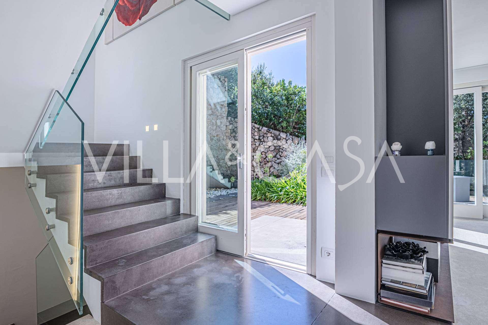 For nylig fuldstændig renoveret og fordelt på fire niveauer, forbundet med en intern elevator, udviser residensen en sjælden elegance og raffineret funktionalitet. Arkitekturen med sine fejlfri linjer og glasfacader skaber harmoni mellem de indre rum og de charmerende terrasser. Villaen er omgivet af en velplejet terrassehave på 500 m², der tilbyder ejere privatliv og ro, hvor der også er gemt et udsøgt afslapningsområde med swimmingpool.