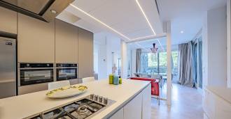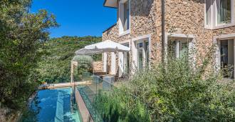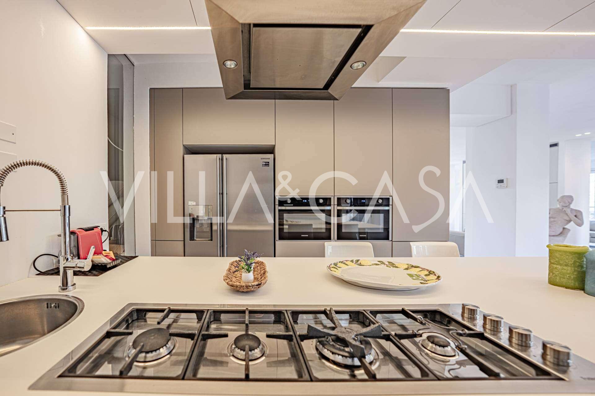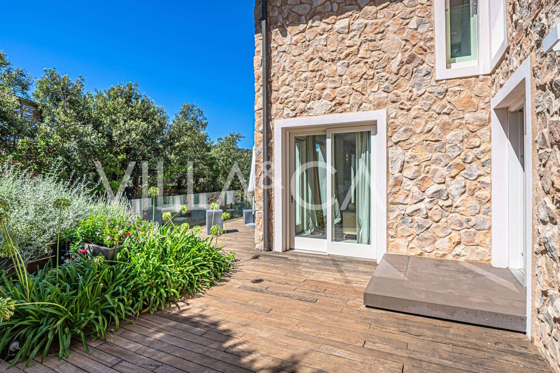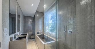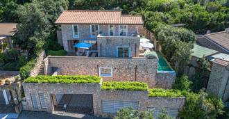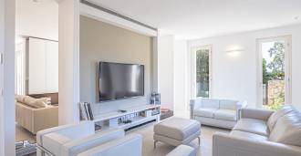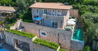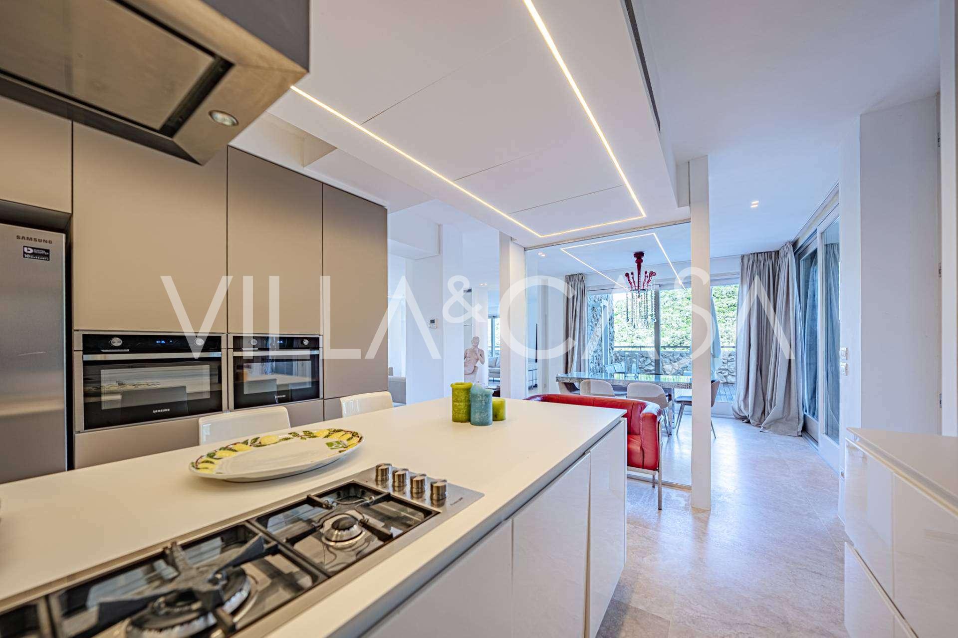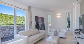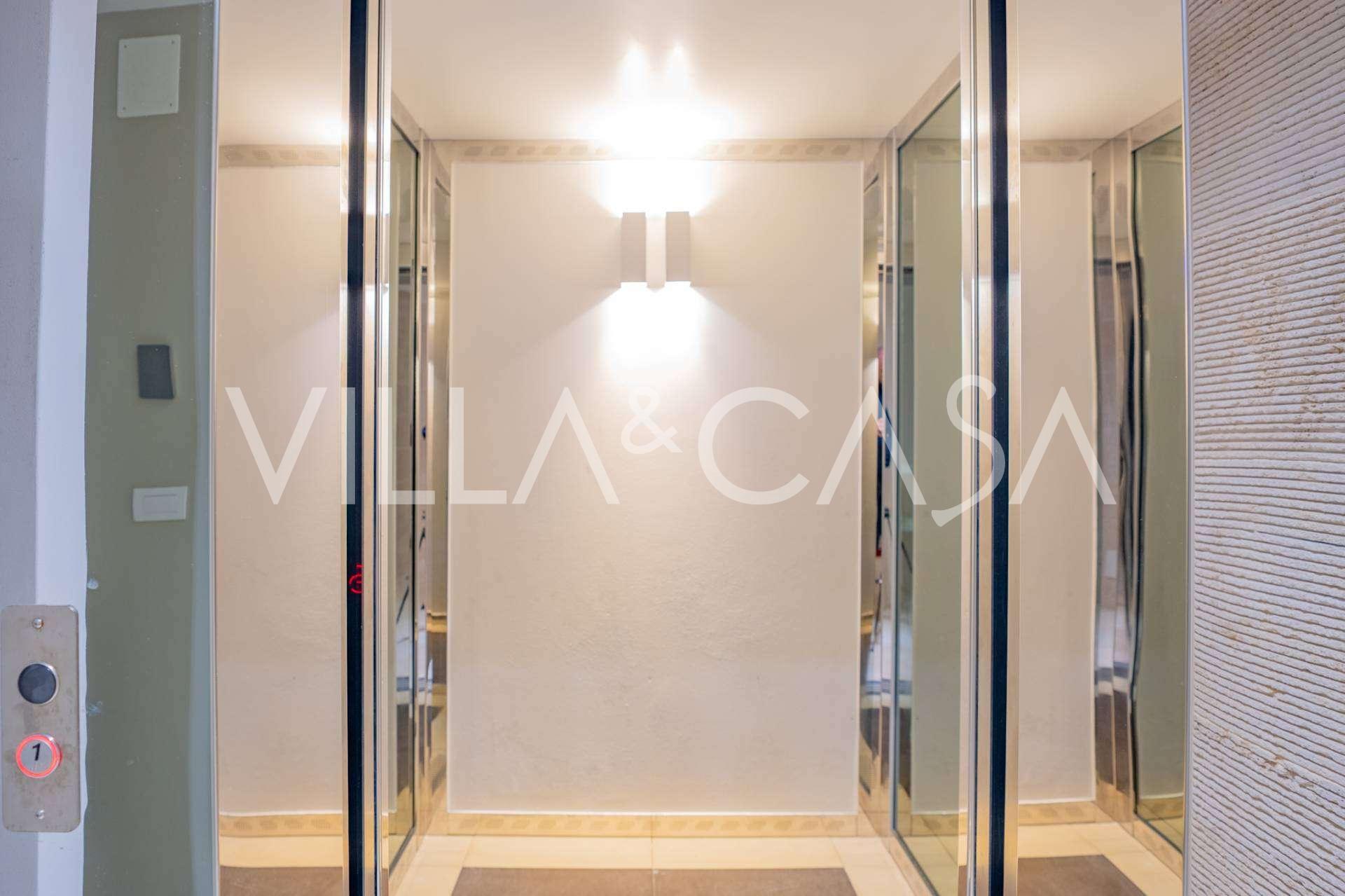 For nylig fuldstændig renoveret og fordelt på fire niveauer, forbundet med en intern elevator, udviser residensen en sjælden elegance og raffineret funktionalitet. Arkitekturen med sine fejlfri linjer og glasfacader skaber harmoni mellem de indre rum og de charmerende terrasser. Villaen er omgivet af en velplejet terrassehave på 500 m², der tilbyder ejere privatliv og ro, hvor der også er gemt et udsøgt afslapningsområde med swimmingpool.