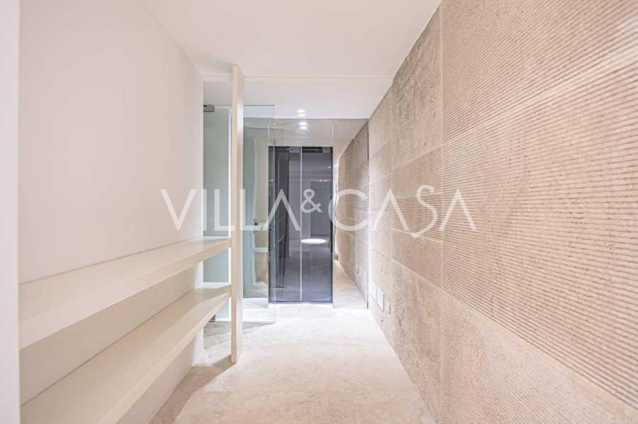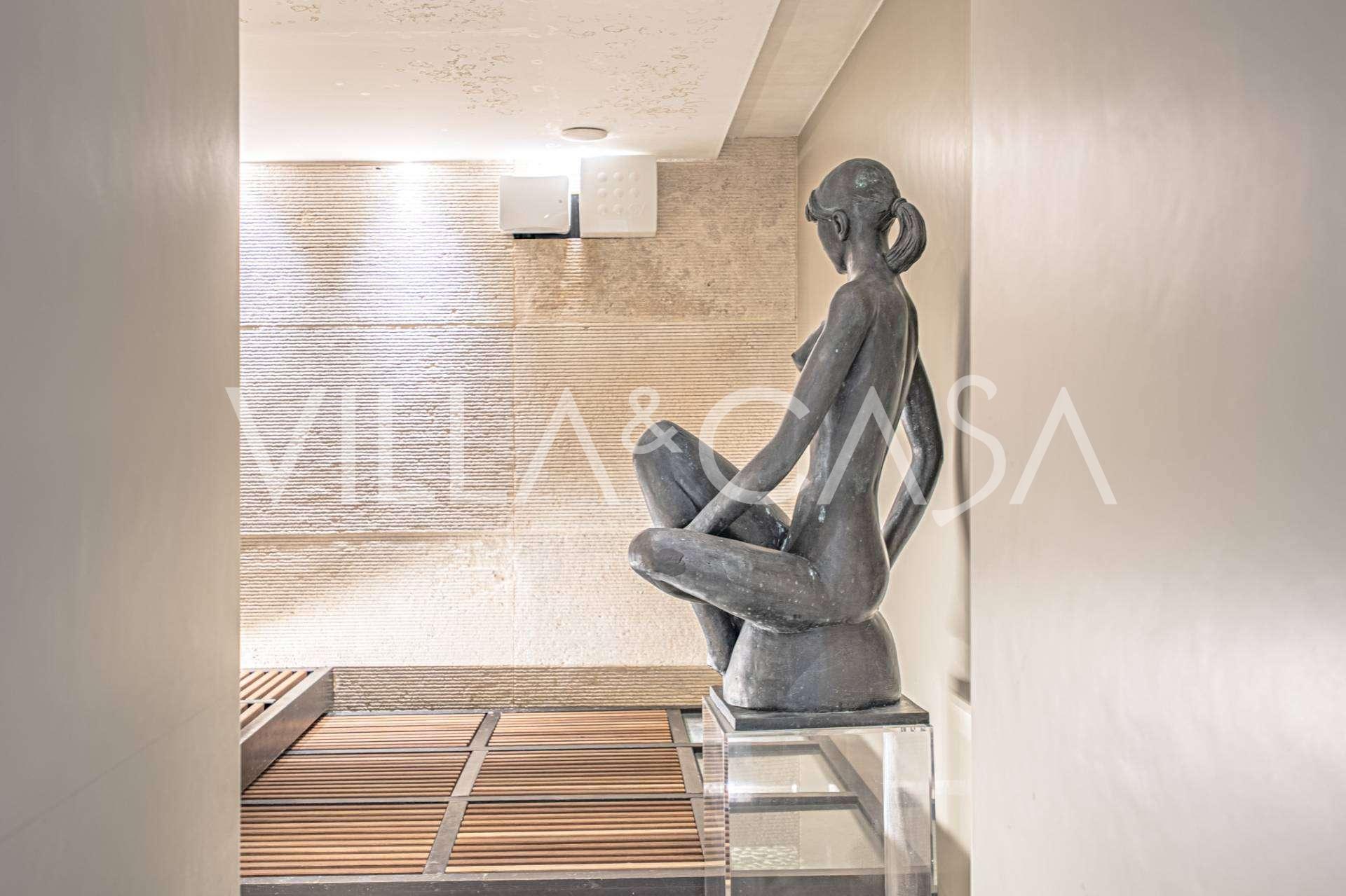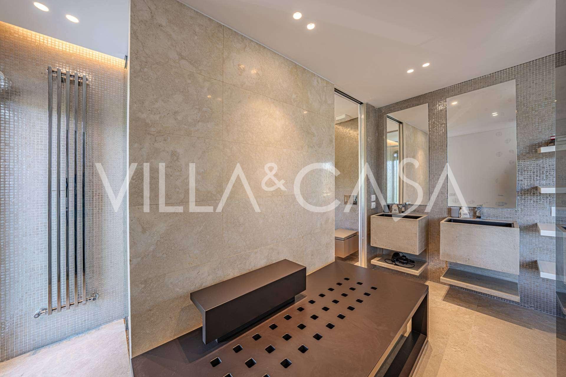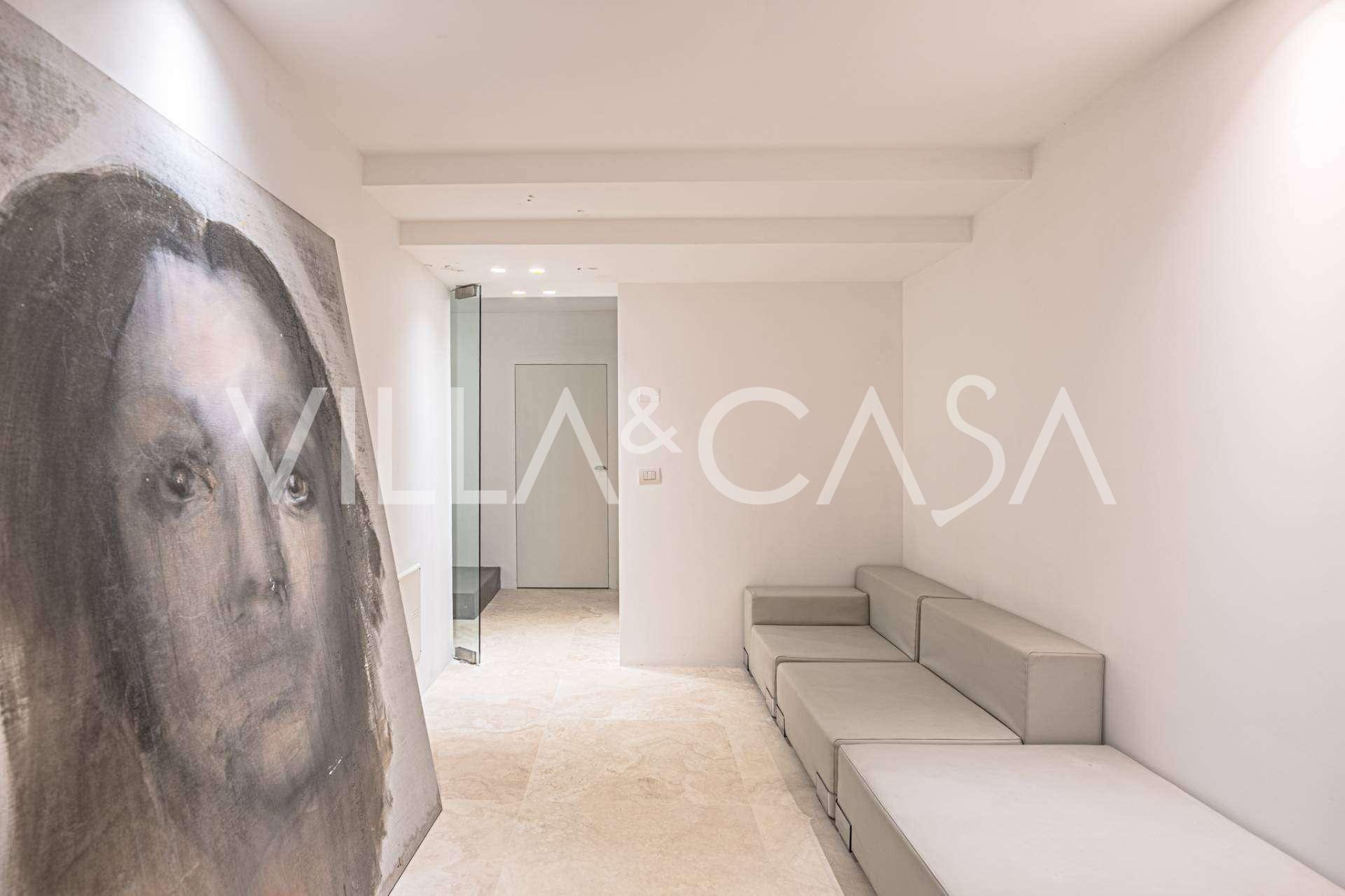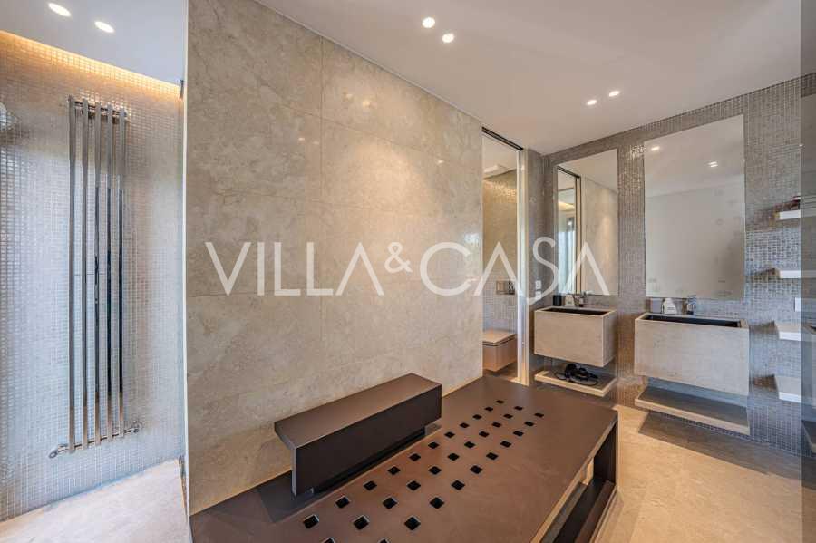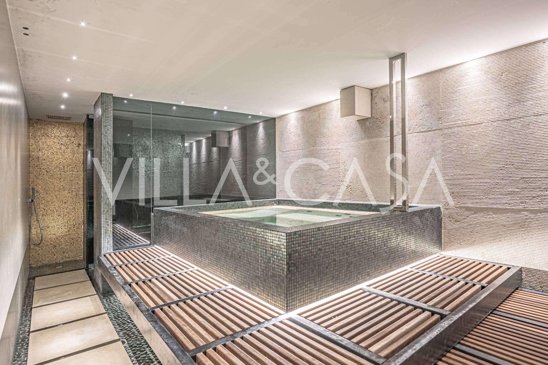På haveplan er der en separat lejlighed med uafhængig indgang, ideel til gæster eller personale. I villaens kælder findes et storslået wellness-område: en rummelig spabad, tyrkisk hammam, privat afslapningsrum samt et ekstra soveværelse med en-suite badeværelse og opbevaringsrum, inklusive en vinkælder.