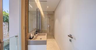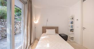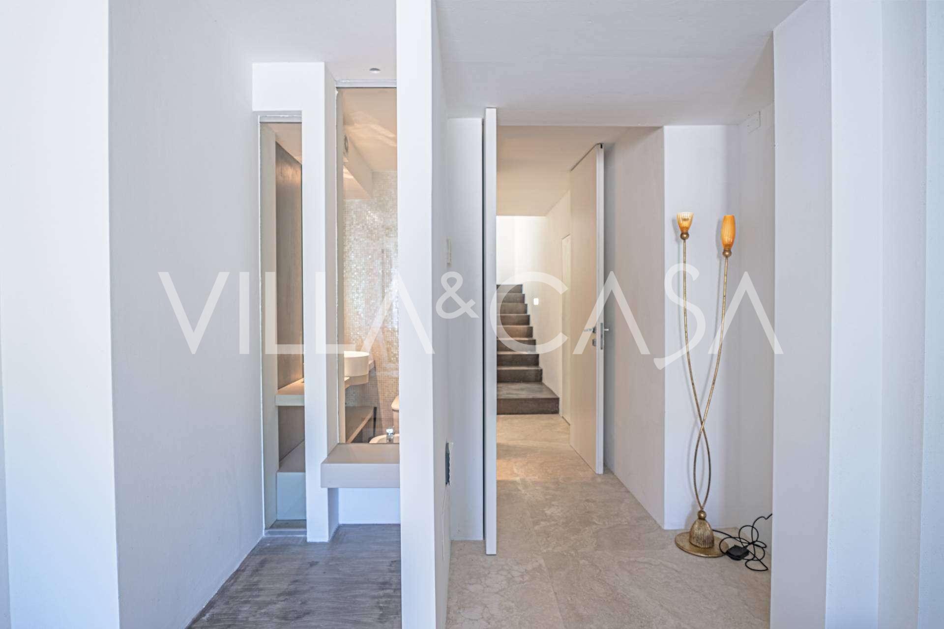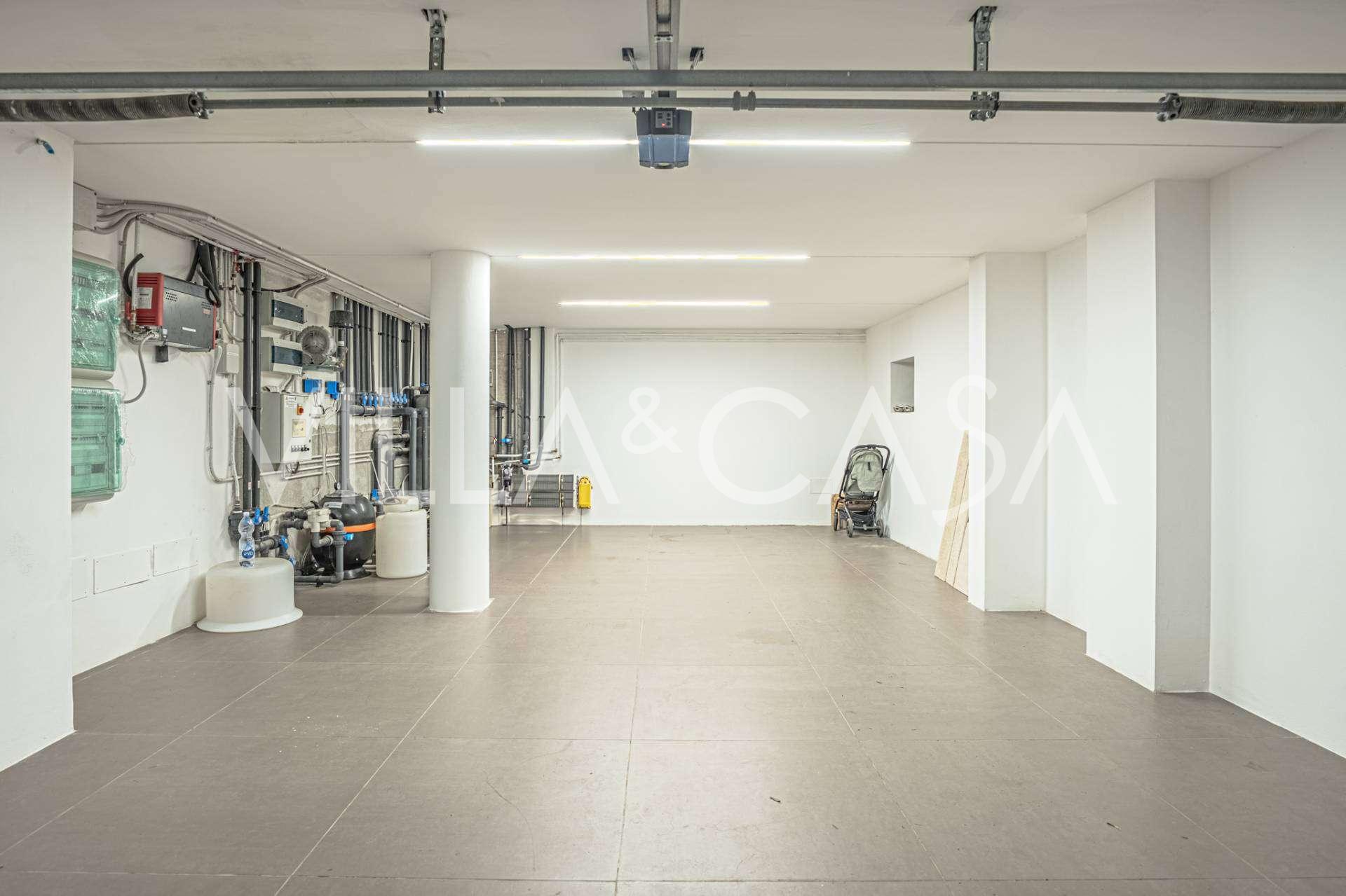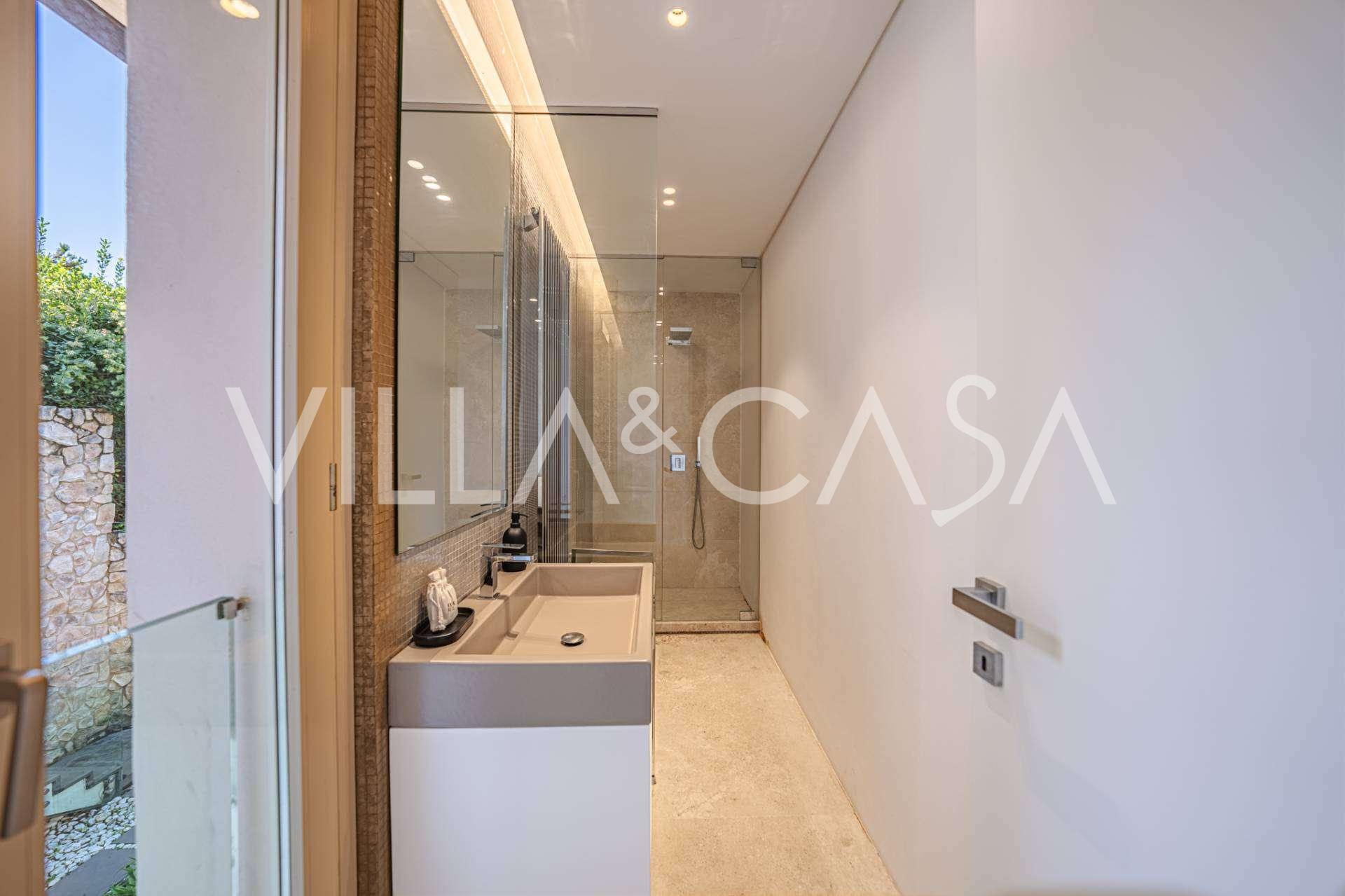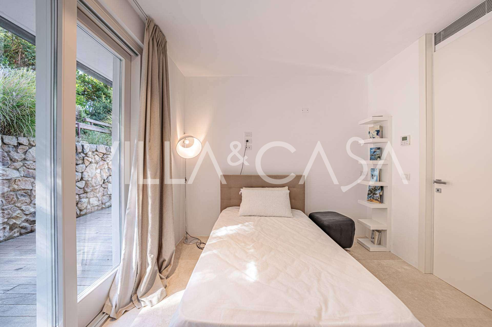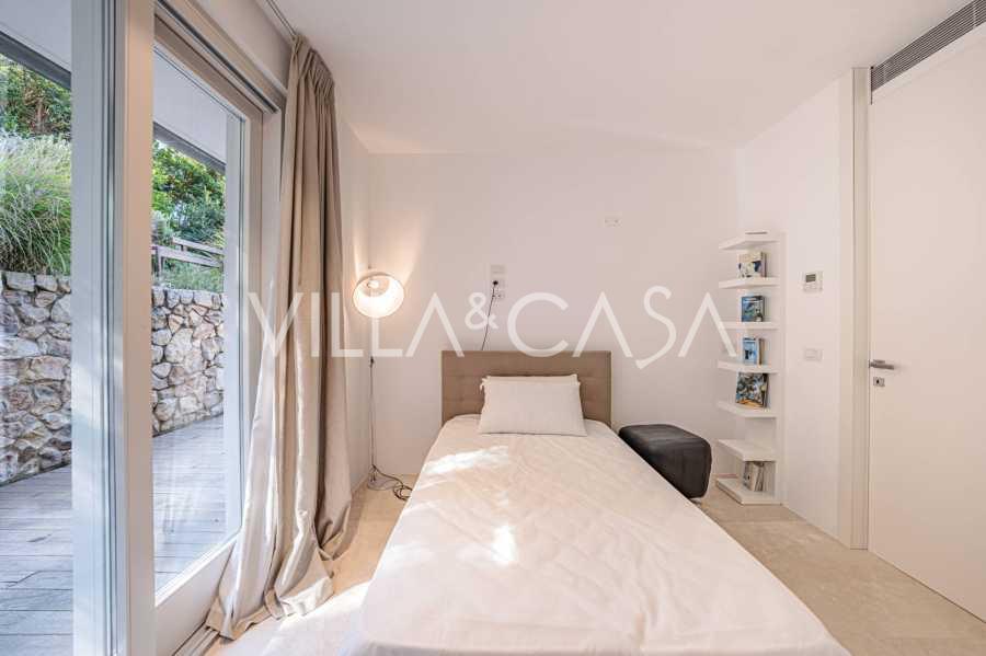 På haveplan er der en separat lejlighed med uafhængig indgang, ideel til gæster eller personale. I villaens kælder findes et storslået wellness-område: en rummelig spabad, tyrkisk hammam, privat afslapningsrum samt et ekstra soveværelse med en-suite badeværelse og opbevaringsrum, inklusive en vinkælder.