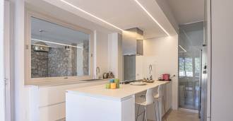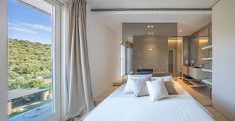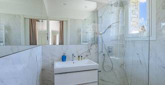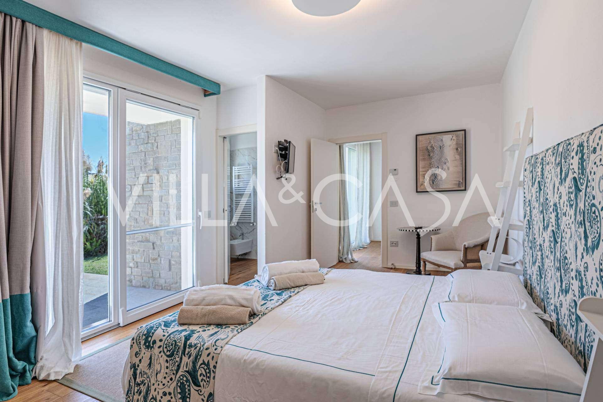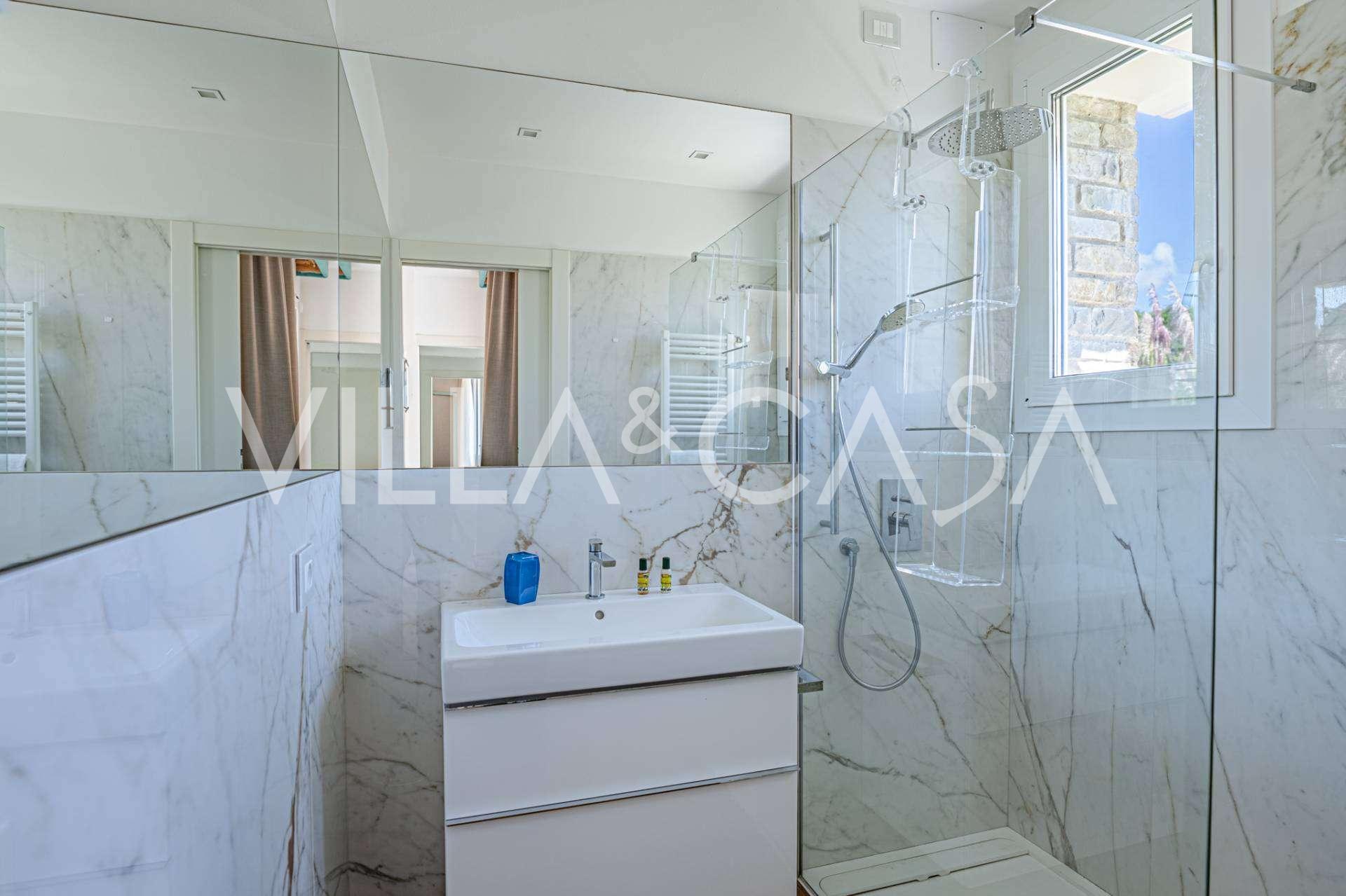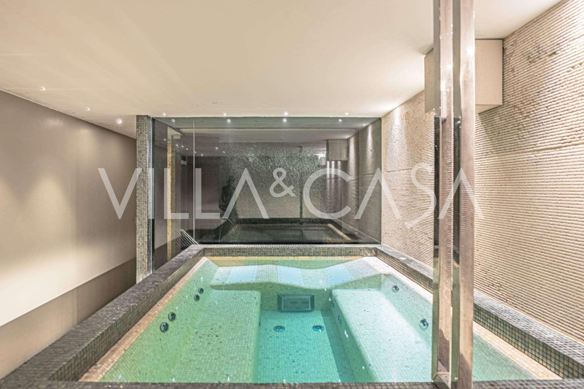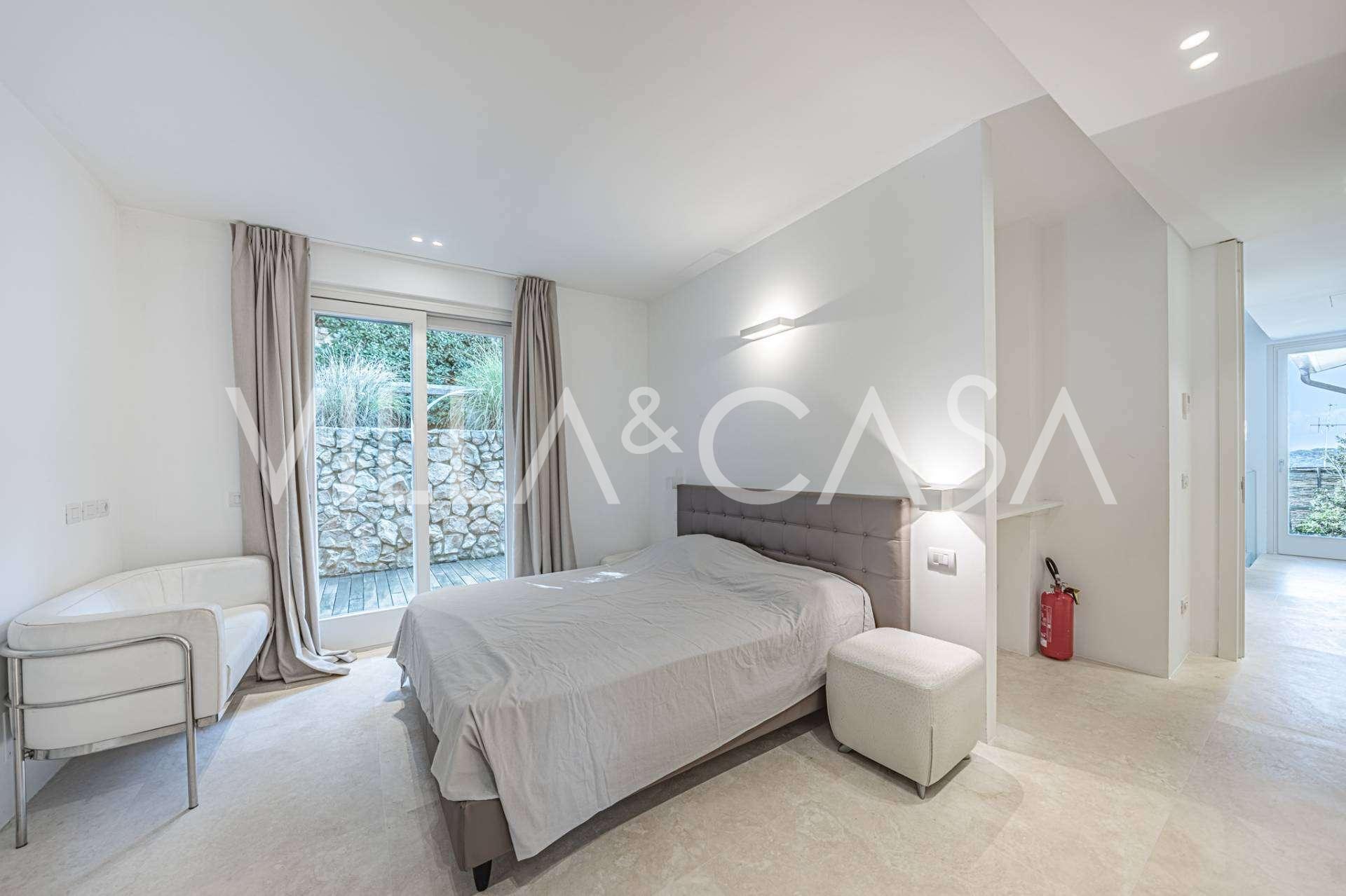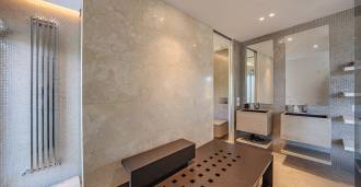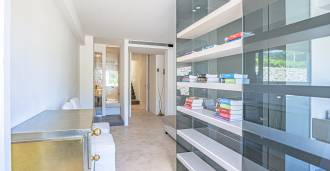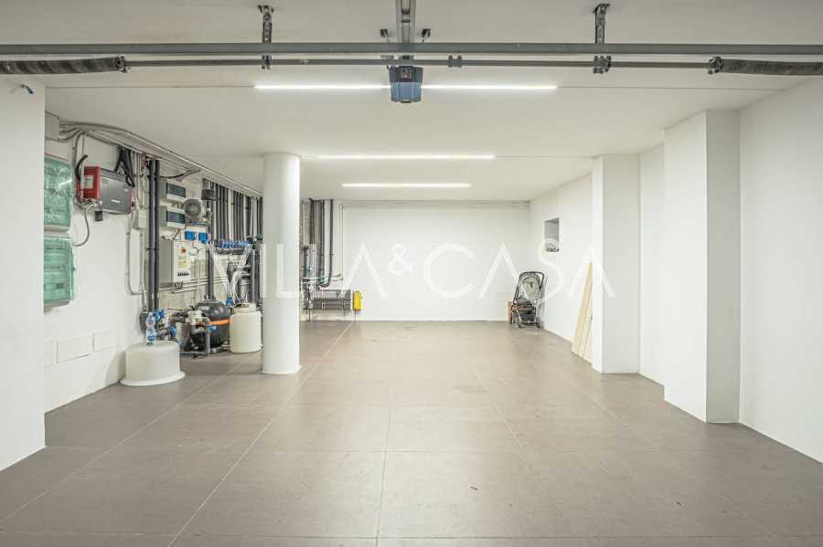 På haveplan er der en separat lejlighed med uafhængig indgang, ideel til gæster eller personale. I villaens kælder findes et storslået wellness-område: en rummelig spabad, tyrkisk hammam, privat afslapningsrum samt et ekstra soveværelse med en-suite badeværelse og opbevaringsrum, inklusive en vinkælder.