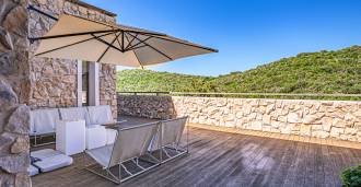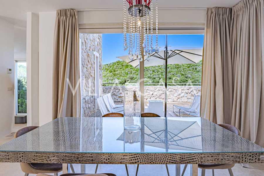 På de første bakker i Punta Ala, hvorfra der er en imponerende udsigt over kysten af Castiglione della Pescaia med sine smaragdgrønne nuancer og bløde linjer i det toskanske landskab, ligger denne enestående villa i luksusklassen, der afspejler moderne stil og højeste komfort.