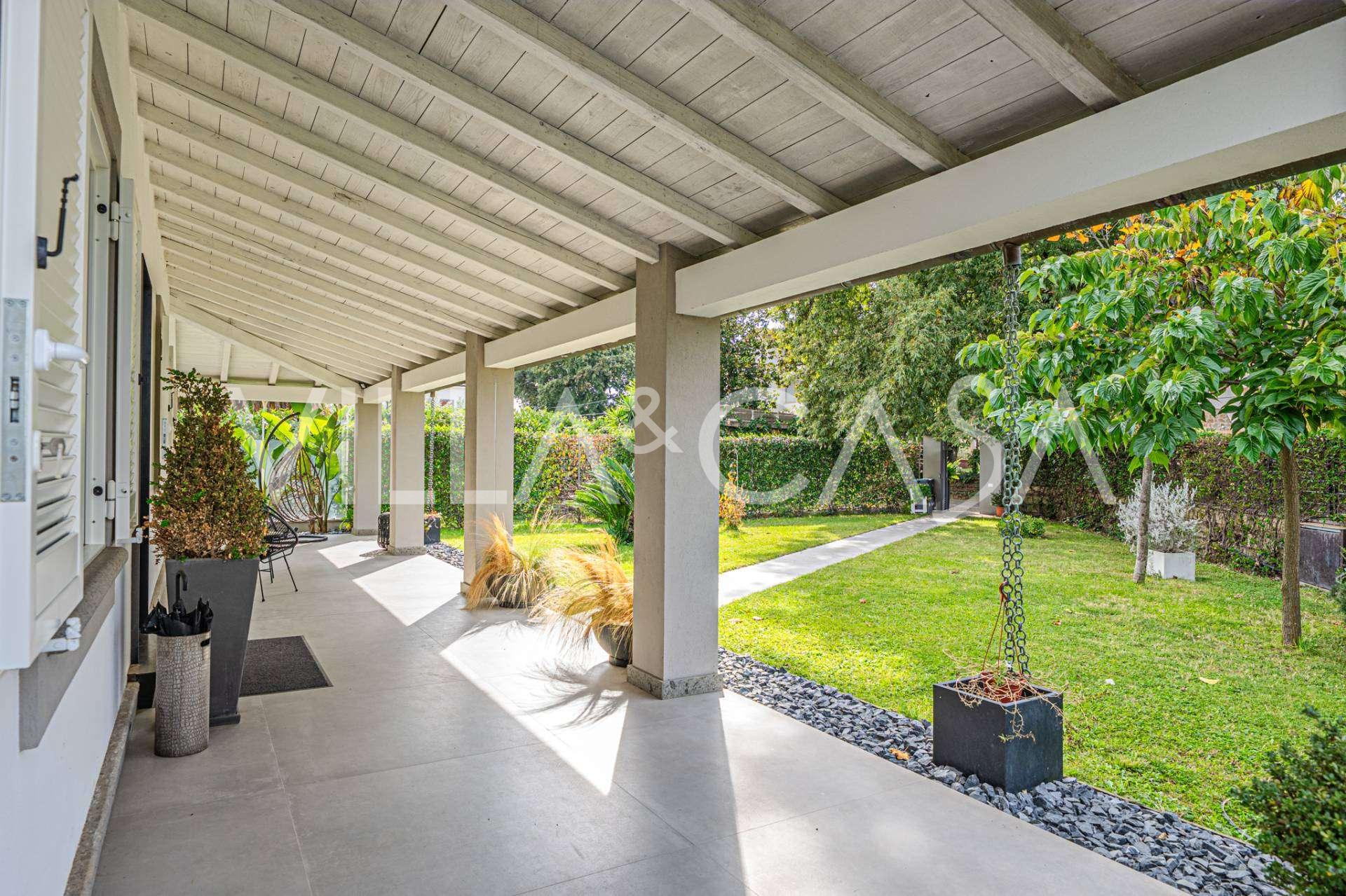 Villaen er bygget med materialer af høj kvalitet og er udstyret med et autonomt varmesystem, aircondition og moderne tekniske løsninger. Den velplejede have sikrer hygge og privatliv, mens parkering til to biler tilføjer komfort.